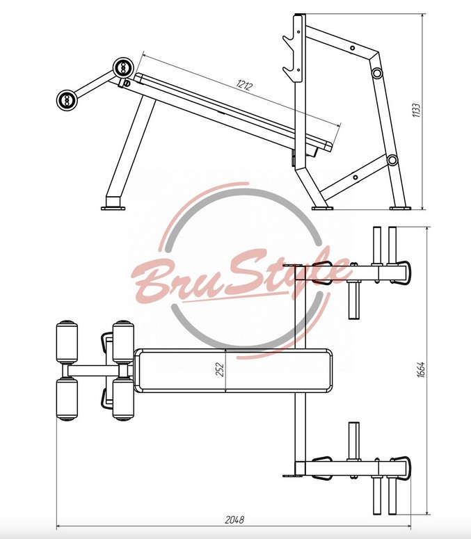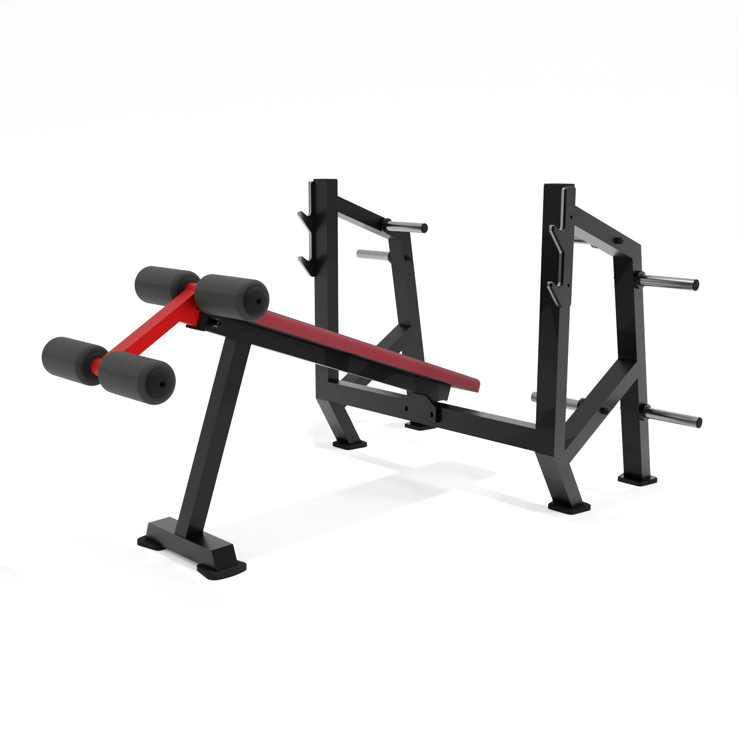 Лавка для жиму під кутом вниз TC106.1 – тренажер, що дозволяє рівномірно розподілити навантаження під час виконання жиму лежачи з додатковими стійками. Жим під кутом вниз використовується з метою ущільнення і “підрізання” нижньої кромки грудних м’язів, надання їй більш виразних і різких форм і відокремлення від основного масиву. Основа лави виготовлена із міцної фанери, а м’яке поролонове сидіння, обтягнуте штучною шкірою. На стійках є два гачки для різного рівня установки штанги. Надійність при виконанні вправ забезпечує сталева конструкція, на ніжках є гумові підп’ятники, що амортизують.