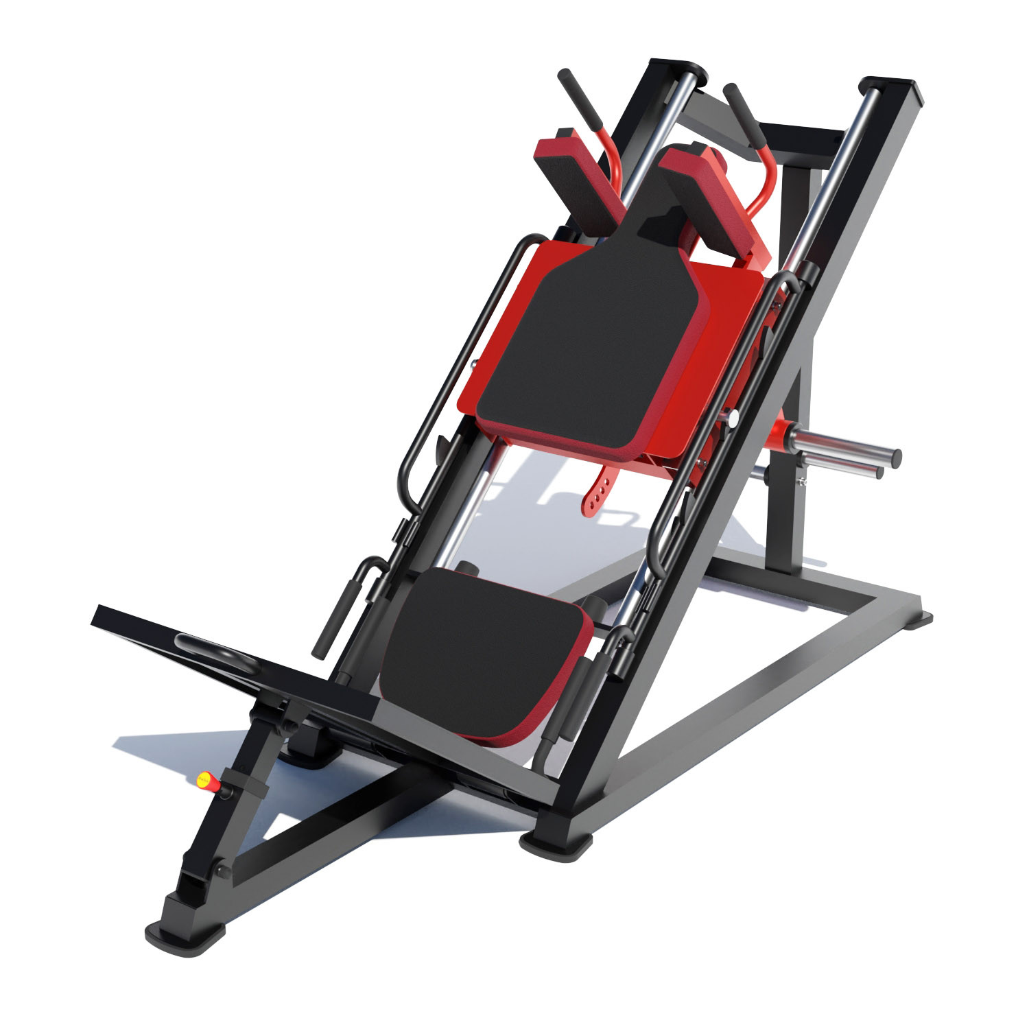 В одному тренажері реалізовано два режими робота для виконання вправ жим ногами та гак машина. Для зміни положень потрібно переставити спинку з однієї платформи на іншу та змінити кут нахилу верхньої платформи. Зміна положень здійснюється підпружиненими фіксаторами, тому потрібно лише однією рукою відтягнути фіксацію та другою змінити положення.