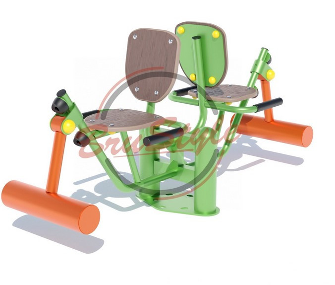 Дитячий вуличний тренажер “Розгинач стегна” KG128 є спортивним обладнанням, призначеним для 2-х осіб. Вправи на цьому тренажері дозволять опрацювати м’язи передньої частини стегна. Пристрій виконаний з металу, покритого полімерною порошковою фарбою, стійкий до дії різних метеоумов, а також антивандальну конструкцію. Надійна металева конструкція дозволяє тренуватися людям із різною вагою. Цей тренажер рекомендується для тренування як жінок, так і чоловіків.