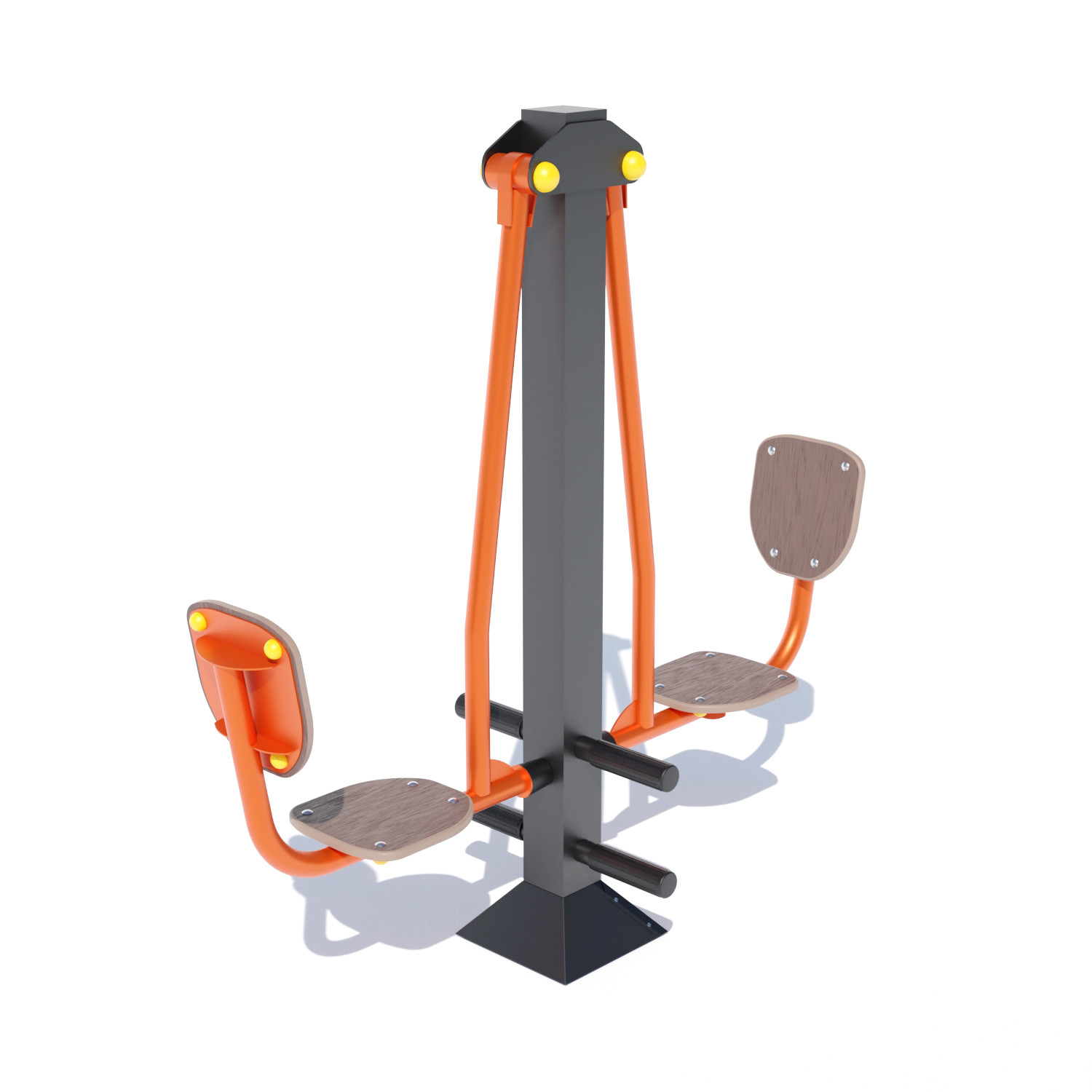 Тренажер створений для відновлення тонусу основних м’язів ніг: м’язи стегон, сідничні м’язи та м’язи гомілки. Додатково жим ногами для вулиці використовують для розробки та відновлення колінних суглобів. Перевагою даного спортивного снаряда є той факт, що виконуючи вправи, Ви виключаєте перевантаження суглобів, самостійно регулюючи зусилля, використовуючи власну вагу.