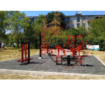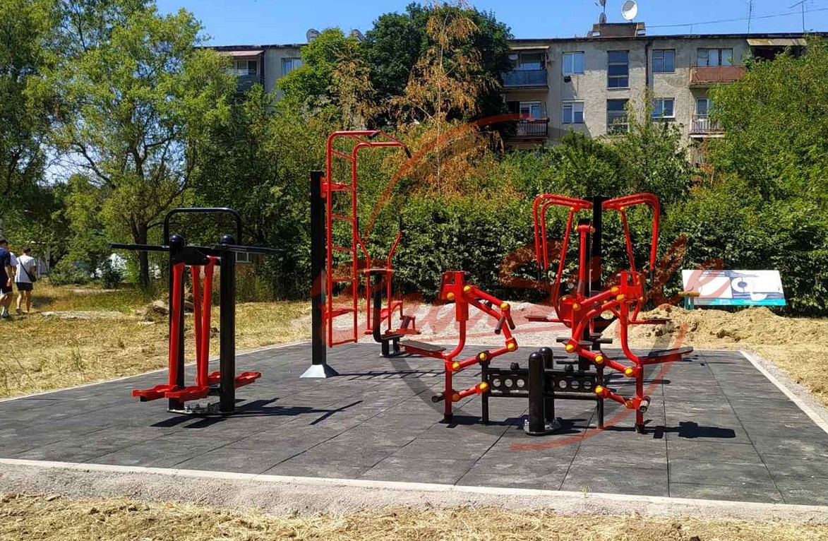 Конструкція цього вуличного тренажера для жиму грудей двостороння. Це дозволить займатися у ньому одночасно двом охочим. Каркас тренажера виготовлений з товстостінних труб. Кольори фарбування можуть бути будь-якими, на прохання клієнта.