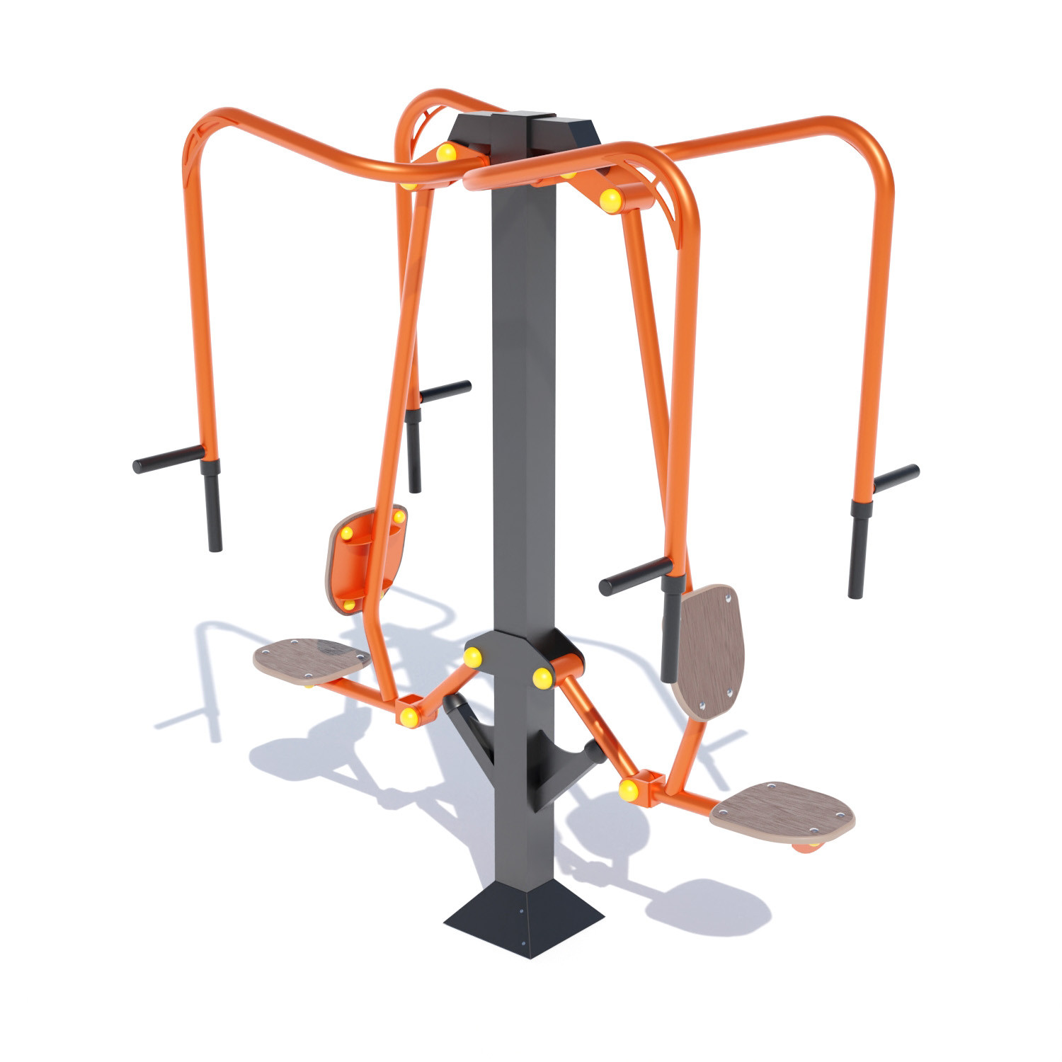 Цільові робочі та навантажувані групи м’язів – грудні, якщо точніше, тренажер створений для прицільного та безпечного опрацювання великого грудного м’яза. Виконуючи «жимовий» рух від грудей, Ви, тим самим, за допомогою важільного механізму піднімаєте себе вгору, а потім, дотримуючись правильної техніки, плавно опускаєтеся у вихідне положення. Заняття у вуличному тренажері для м’язів грудей виконуються не в нудній статиці, а динамічні рухи вгору-вниз, поряд з користю, принесуть Вам величезне задоволення.