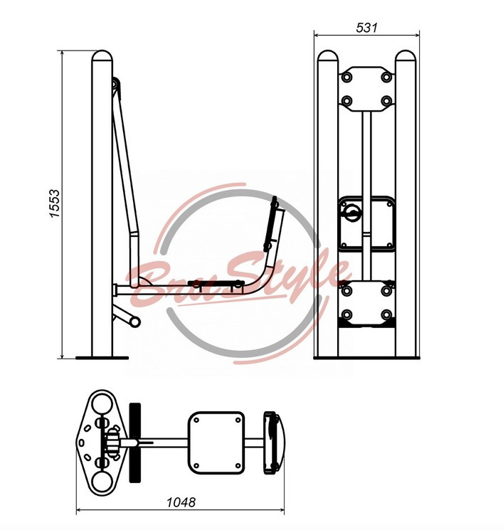 Установка проводиться на закладну, яка бетонується. Закладна та інструкція по установці входять до комплекту вуличного тренажера горизонтальним від компанії BruStyle.
