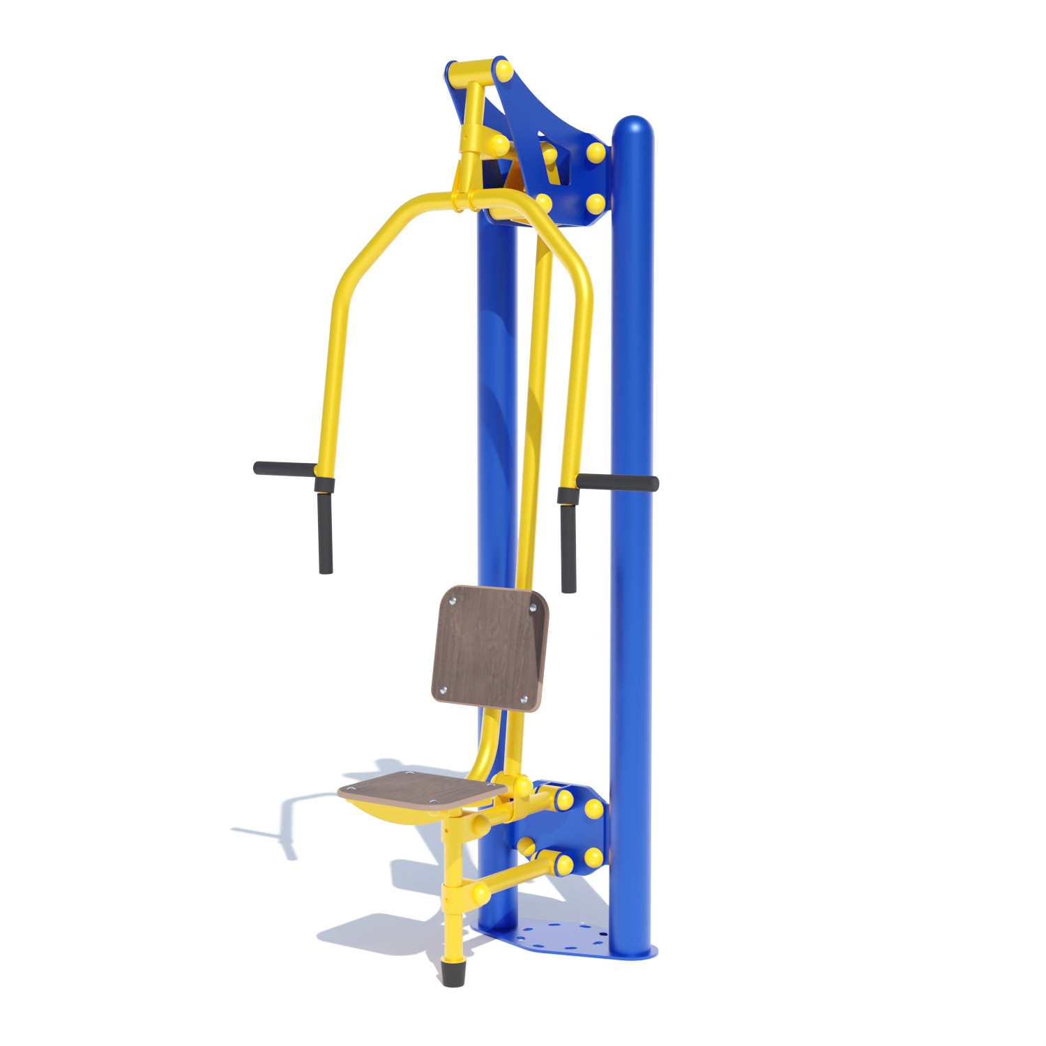 Вуличний тренажер жим від грудей одинарний SG114.1 – снаряд, від якого не відірвати чоловічої частини населення. Встановлений у дворі багатоповерхівок він збиратиме цілі компанії, які бажають прокачати торс, розвинути грудну клітку, розширити та зміцнити спину, виявити у себе потужні біцепси та трицепси. Люблять його і спортсмени, вважаючи одним із головних елементом у кожному циклі тренування. Тренажер – подвійний, що дозволить займатися на ньому одразу двом людям. Конструкція та матеріали снаряда продумані до дрібниць. Потужний метал покритий полімерними фарбами, що дозволяє використовувати його на вулиці.