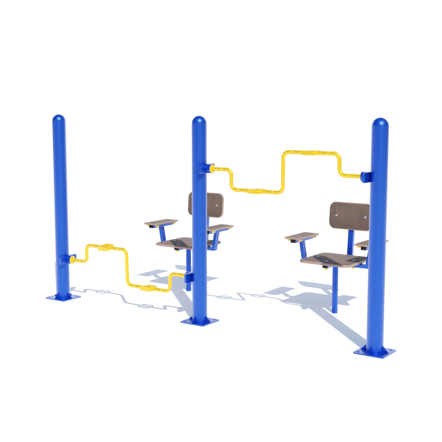 Вуличний тренажер для м’язів рук та ніг SG121 – ефективний, зручний у використанні, надійний, а також безпечний тренажер, який зміцнює м’язи ніг, рук та тулуба в цілому, зміцнює та підтримує серцево-судинну систему. Цей тренажер можна використовувати цілий рік, тому що він має зносостійке до різних погодних умов полімерне барвисте покриття та антивандальну структуру. Заняття на ньому сприяють прискоренню кровообігу в цих областях тіла та інтенсивному збагаченню м’язів киснем.