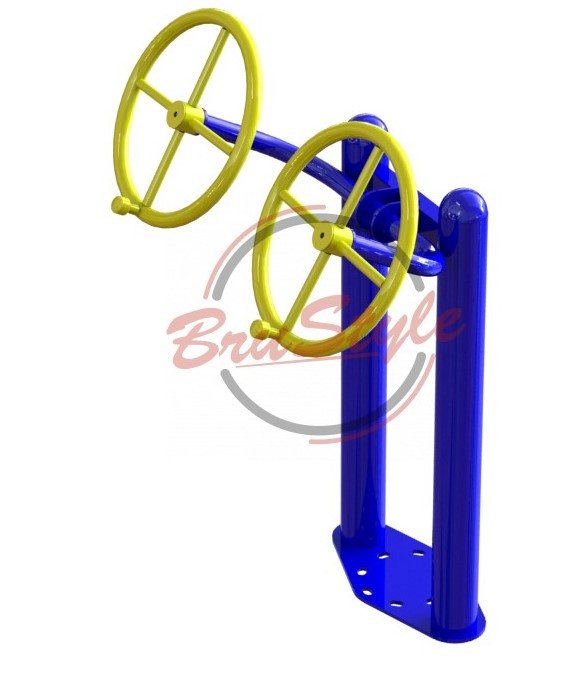 Тренажер для м’язів рук плечового пояса односторонній SG122.6 призначений для зміцнення м’язів плечового пояса та м’язів рук на чистому повітрі. Тренажер для м’язів рук може використовуватися для реабілітації суглобів фалангів пальців, ліктьових суглобів і плечових при травмах. При регулярному використанні на тренажері для м’язів рук можна зміцнити ліктьові та кистьові суглоби рук. Для роботи на тренажері необхідно обома руками за ручки на кермах обертати керма в одну сторону, а потім – в іншу по колу. На тренажері для м’язів рук необхідно здійснити кілька підходів щодо 10-12 обертань.