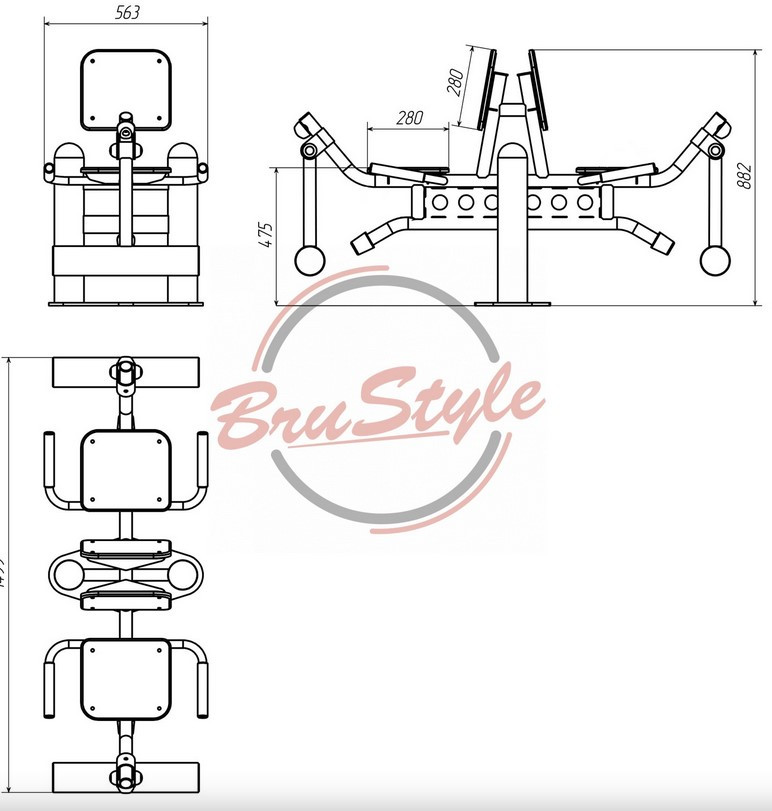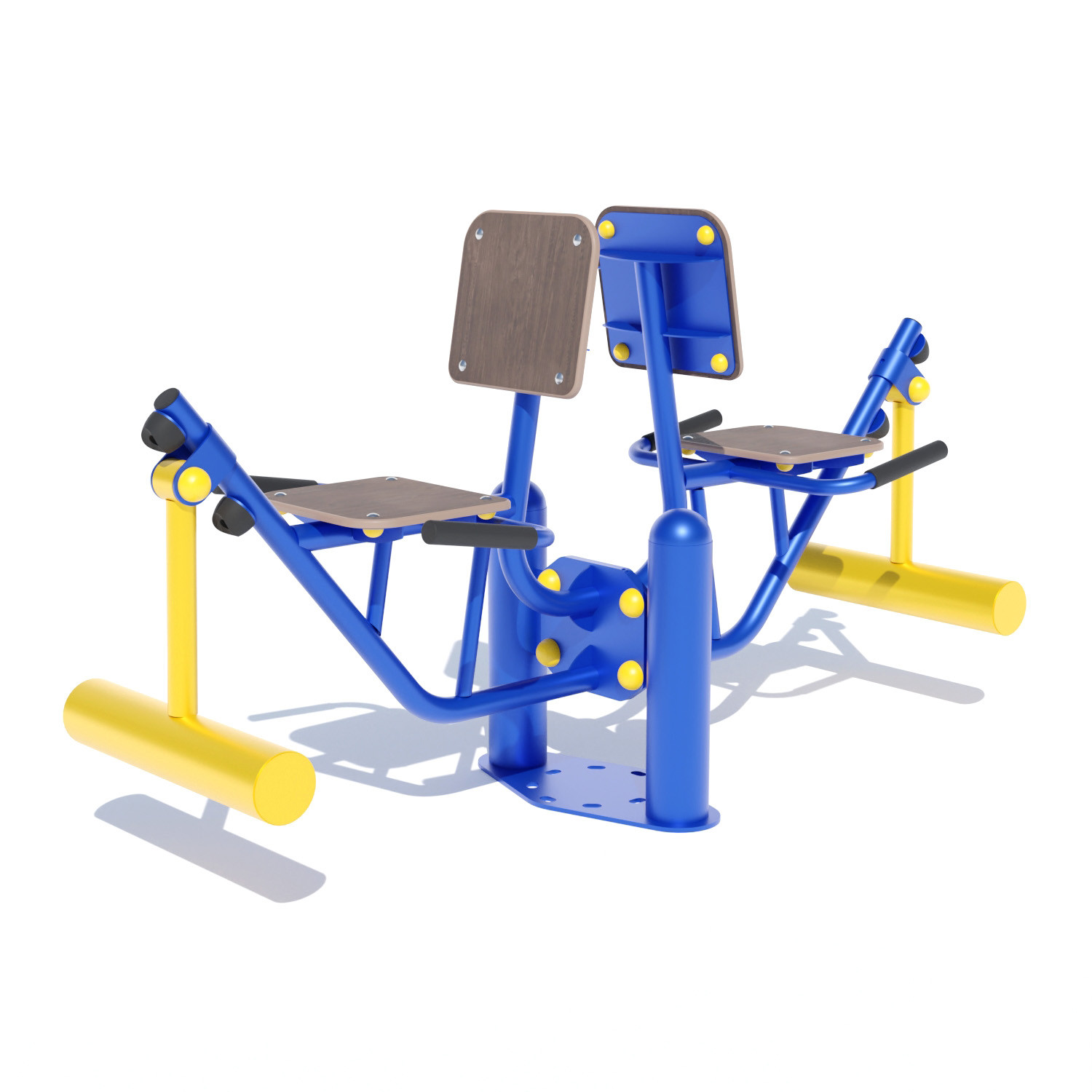 Вуличний тренажер розгинач стегна SG128, призначений для роботи над передньою та частково бічною поверхнею стегна (або над так званим чотириголовим м’язом стегна). Сам процес вправи досить простий. Спортсмен зручно сідає у крісло, шкарпетками зачіпляється за важелі, а потім випрямляє ноги. Регулярні заняття на розгиначі стегна «подарують» Вам гарні підтягнуті ноги та стегна. Снаряд – подвійний. Тож відчуттями можна і з напарником поділитися. Зроблений він із міцного металу, має антивандальну структуру. Призначений для використання на вулиці цілий рік.