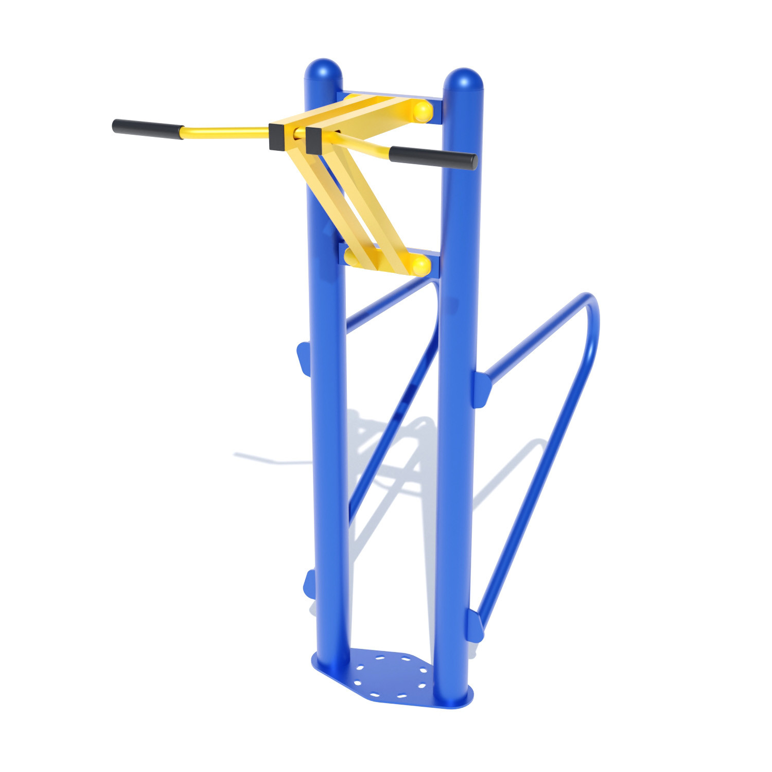 Турнік-бруси для людей з ОФМ SG145.1 забезпечує комплексне тренування основних груп м’язів, сприяє збільшенню гнучкості суглобів. Віджимання на брусах належать до багатосуглобових базових вправ, які залучають крім основних великих груп м’язів ще й безліч малих. Брусья, а точніше, вправи на них дозволяють гармонійно розвивати весь торс тіла, починаючи від фізичних якостей типу сили і витривалості, і закінчуючи обсягами конкретних м’язів. Підтягування на турніку по праву вважають найважчою вправою, в якій бере участь вся людська вага. Такі підтягування допомагають тренувати досить велику кількість м’язових груп. Найактивнішу участь у цьому беруть спина, руки, груди та плечі. Конструктивні особливості та матеріал тренажера дозволяють посилено його використовувати цілий рік. Складається він із потужної несучої рами та зручних важелів. Всі вуличні тренажери мають зносостійке до різноманітних погодних умов, ультрафіолетового випромінювання, полімерне барвисте покриття та антивандальну структуру.