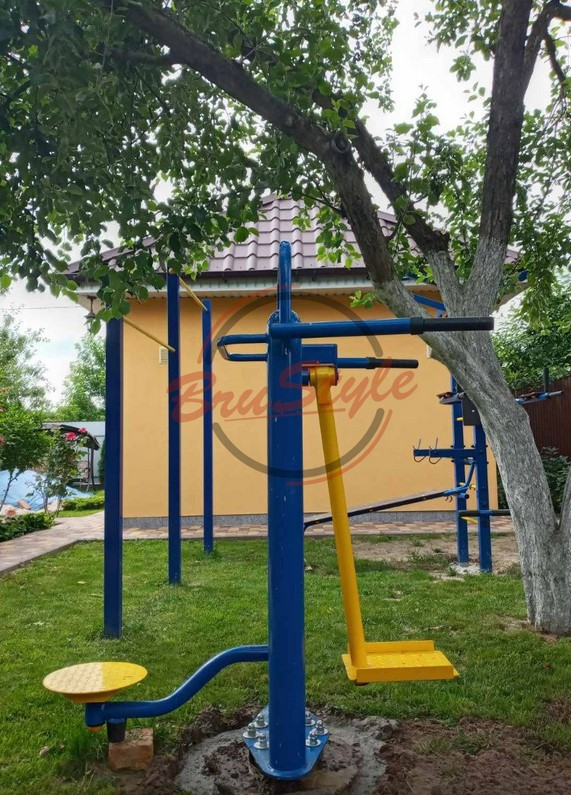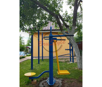 Тренажер для м’язів стегна – Твістер SG158 – це комплексний тренажер, який призначений для опрацювання м’язів стегна, сідниць, торса та косих м’язів живота. На такому тренажері можна займатися вдвох, оскільки він складається з двох елементів: тренажера для м’язів стегна та твістера. Такий тренажер буде особливо доречний на спортивних майданчиках з обмеженим розмірами.
