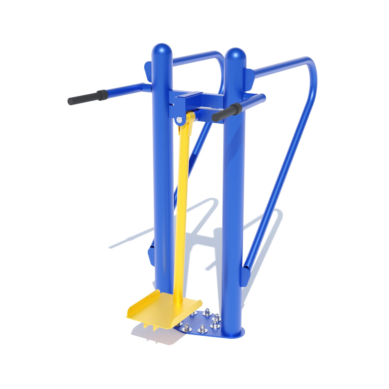 Вуличний тренажер “Маятник-бруси” SG163 з одного боку має елемент бокового розгойдування та з іншого боку упор для преса. Елемент бокового розгойдування призначений для тренування та зміцнення м’язів талії, а з паралельного боку – упор для преса. Одночасно на тренажері може займатись до двох осіб.