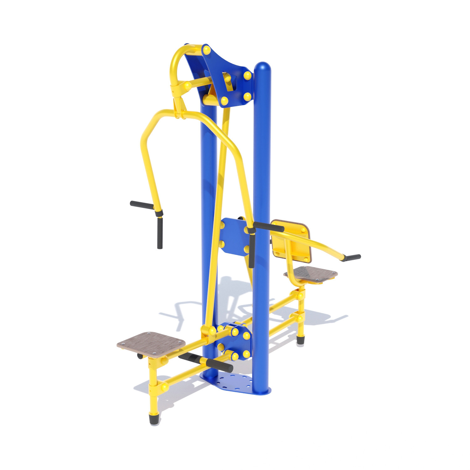 Вуличний тренажер “Жим – тяга донизу” SG804 – це вуличний комбінований тренажер, що дозволяє здійснити одразу кілька цілей. Тяга згори/Жим від грудей розрахований на тренування як одного, так і двох користувачів одночасно. Він є двома тренажерами, об’єднаними в одну конструкторську одиницю. Елемент «Тяга зверху» призначений для тренування всіх основних м’язів спини, так само в роботу включаються біцепси, плечі та передпліччя. Елемент іншої частини тренажера “Жим від грудей” допоможе привести в тонус і підтримувати у відмінному стані усі групи грудних м’язів. Варто зауважити, що при роботі в цьому тренажері ви так само пророблятимете м’язи плечового пояса і рук, що дає можливість значно покращити фігуру в цілому.