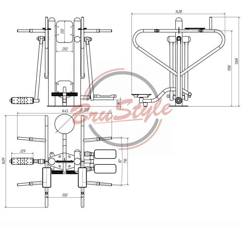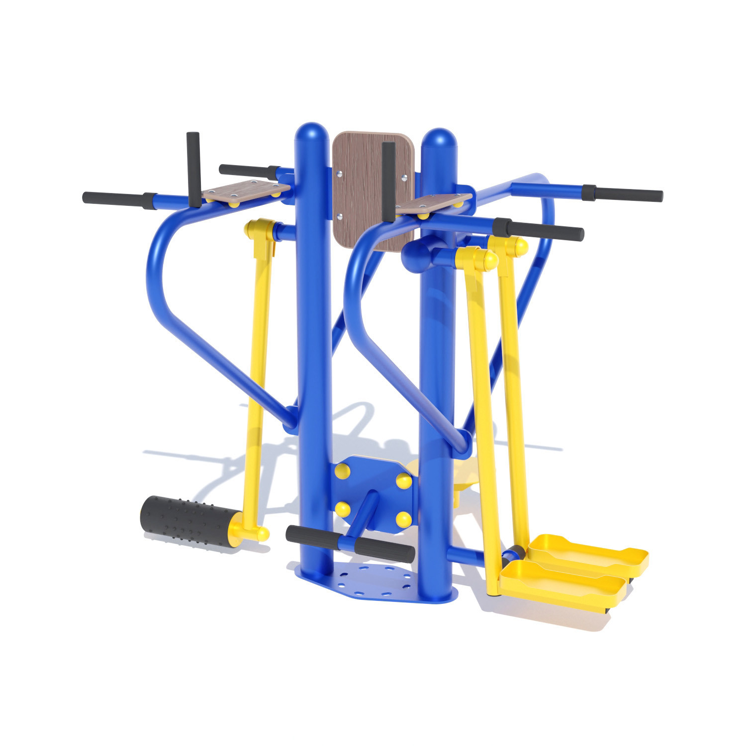 Вуличний тренажер чотиристоронній SG806 забезпечує комплексне тренування основних груп м’язів, сприяє збільшенню гнучкості суглобів та активному спалюванню підшкірного жиру. Тренажер чотири в одному. З одного боку тренажер для м’язів стегна, який сприяє розвитку біцепсів стегон та квадріцепсів, з іншого боку маятник, для розвитку м’язів талії. А також упор для преса та твістер. Тренажер розуміє заняття на тренажері як однієї людини, так і чотирьох.