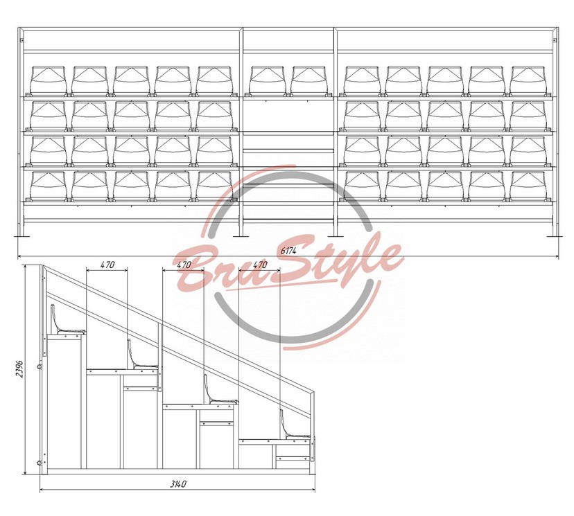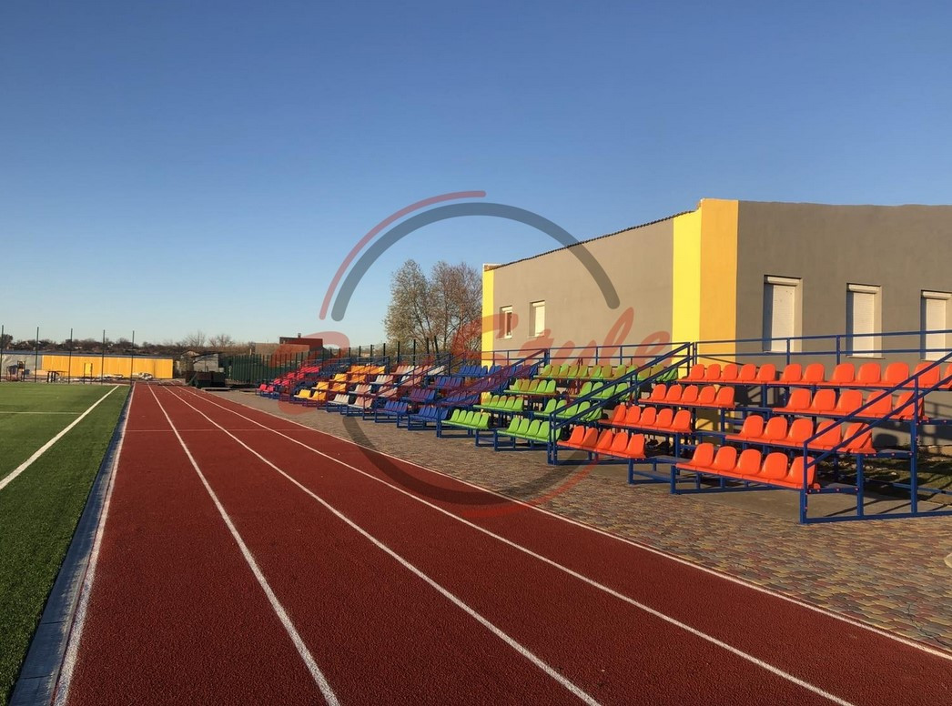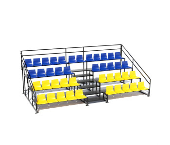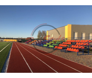 Трибуна (42 места) SG431.1 виготовлені з металевої профільної прямокутної труби з полімерним покриттям, що забезпечує високу корозійну стійкість. Модульність конструкції дозволяє максимально скоротити термін монтажу. Необмежену кількість модулів у довжину. Можливе виготовлення трибуни із навісом (тент, полікарбонат).