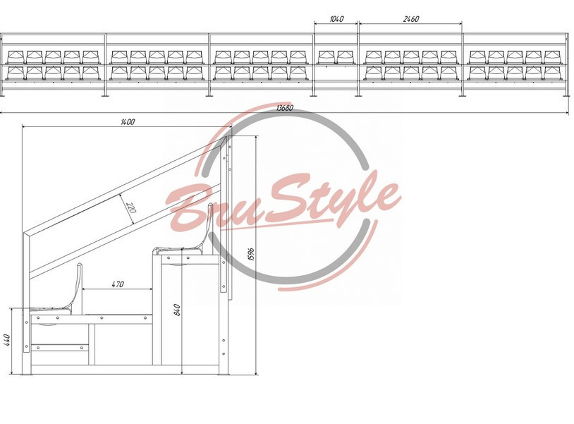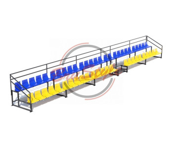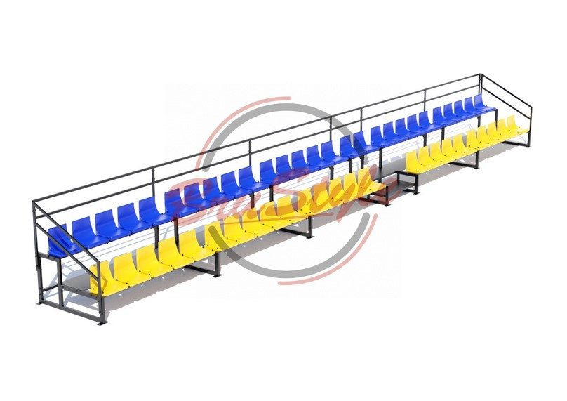 Трибуна (52 місця) SG432 виготовлені з металевої профільної прямокутної труби з полімерним покриттям, що забезпечує високу корозійну стійкість. Модульність конструкції дозволяє максимально скоротити термін монтажу. Необмежену кількість модулів у довжину. Можливе виготовлення трибуни із навісом (тент, полікарбонат).