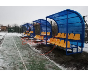 Лава для запасних на 4 місця (з сидінням) SG438 призначена для розміщення тренерського складу, запасних гравців, суддівських бригад. Встановлюється на відкритих спортивних майданчиках чи стадіонах.