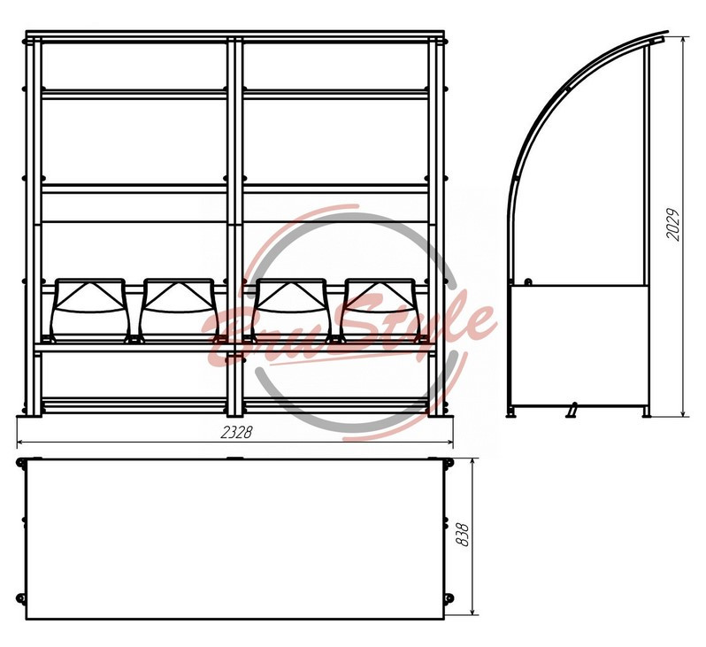 За бажанням замовника, довжина виробу може бути збільшена посекційно, кожна секція розрахована на два посадочні місця.