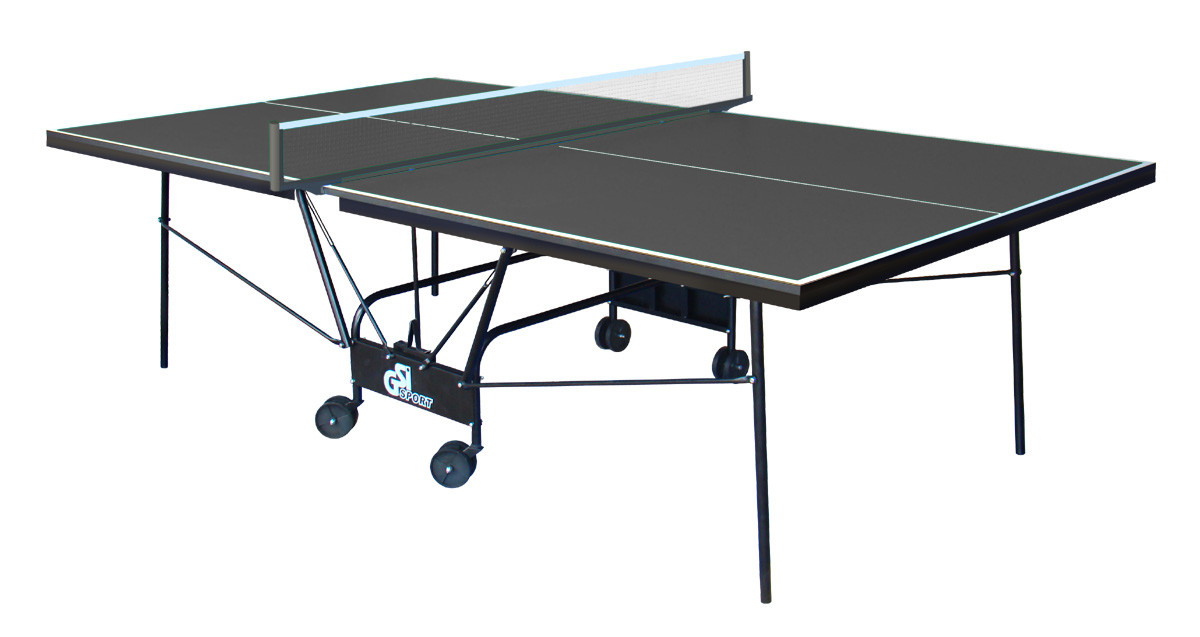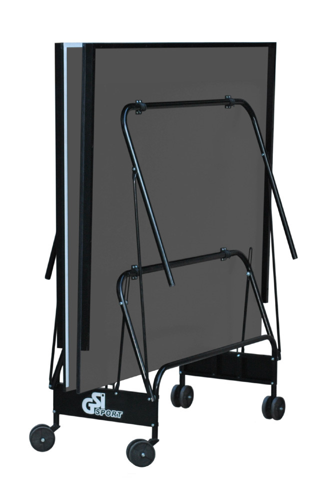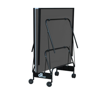 Тенісний стіл для закритих приміщень. Як матеріал для ігрової поверхні використовується спеціально оброблена древесностружечная плита (ДСП) товщиною 16 мм. На ДСП нанесено спеціальне антиблікове пластикове покриття кольору графіт. Ігрова поверхня оснащена металевою рамою (прямокутний профіль 30 * 20 мм). Тенісний стіл базується на компактній зручній візку, виготовленої з металевого трубчастого профілю діаметром 25 мм з поліефірним покриттям. Конструкція столу дозволяє тренуватися в поодинці. Стіл легко переміщується на 4-х здвоєних колесах діаметром 107 мм, 2 колеса маневрені.