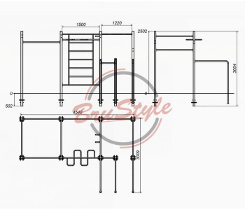 Гімнастичний комплекс “Воркаут” фланці W201.2 виконаний з металевих складових на фланцях – деталях труб, призначених для приєднання до них окремих частин комплексу. Конструкція надійна та стійка. Має середні розміри та оснащена в основному брусами та турниками.