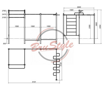 Вуличний спортивний комплекс Воркаут W202.2 виконаний із металевих складових на фланцях – деталі труб, призначених для приєднання до них окремих його частин. Конструкція надійна та стійка. Має середні розміри та оснащена турніками, сходами та рукоходом.