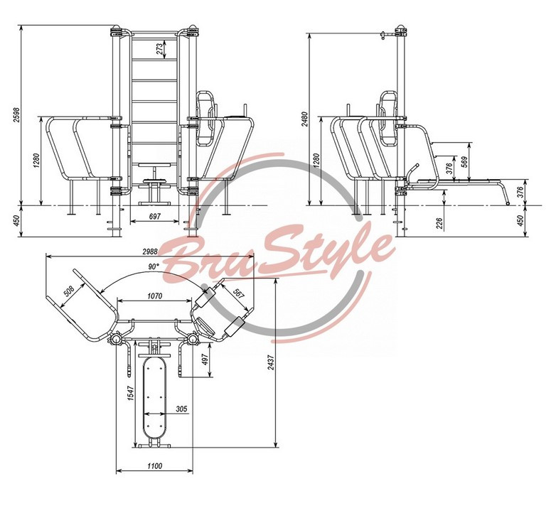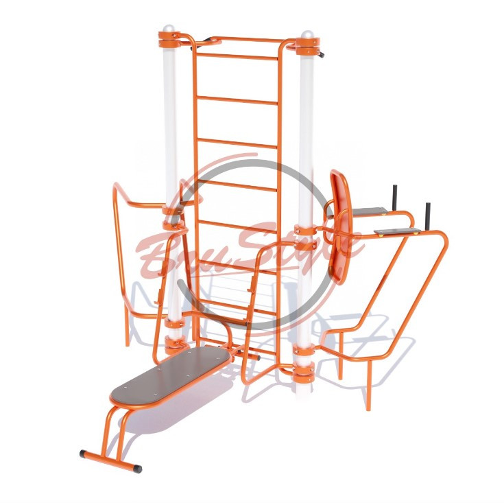 Цей гімнастичний комплекс має стійку конструкцію з міцного матеріалу, який забезпечує безпеку під час виконання вправ. Він включає в себе турнік для вправ на м’язи спини та рук, драбину для розвитку координації та сили, а також лавку для виконання вправ для м’язів пресу.
