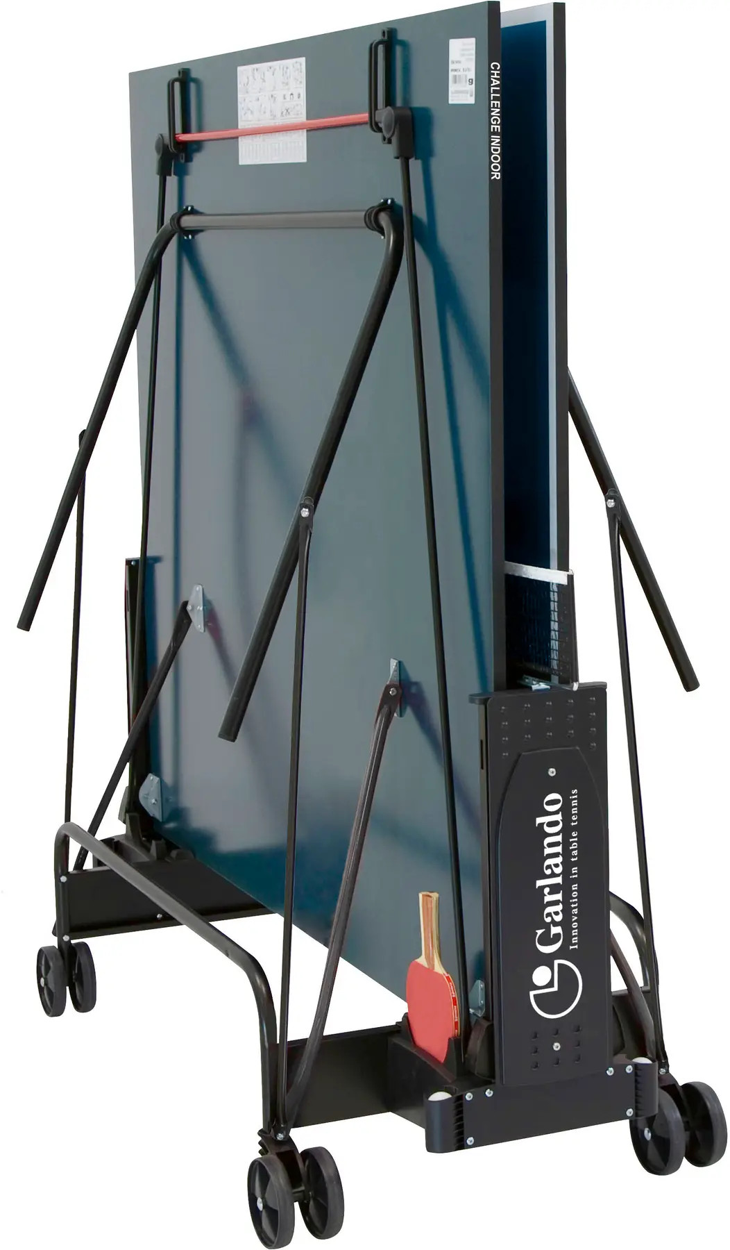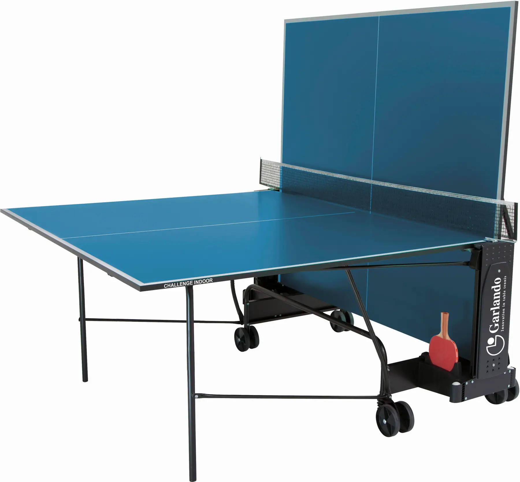Тенісний стіл Garlando Challenge Indoor 16 mm Blue (C-273I) призначений для гри в настільний теніс у закритих приміщеннях. Ігрова поверхня виконана з високоякісного ДСП товщиною 16 мм із меламіновим покриттям. Каркас та ніжки виготовлені з металевих трубок діаметром 25 мм із порошковим фарбуванням. Чотири здвоєні транспортувальні колеса діаметром 125 мм, два з яких обертаються на 360°, суттєво полегшують переміщення столу за потреби. Тенісний стіл оснащений сіткою та тримачем для ракеток і м'ячів. Компактний пристрій автоматичного закривання мінімізує обтяження після того, як настільний стіл складено, а система SMS (Smart Manual System) дозволяє розблокувати стільниці одним рухом максимально швидко та безпечно. Складана конструкція з автоматичною системою блокування забезпечує зручне зберігання столу в домашніх умовах. Піднявши одну з половинок стільниці, тенісний стіл можна використовувати як для одиночних тренувань, так і для гри людьми з обмеженими можливостями. Стільниця забезпечує хороший відскік м'яча, а покриття антивідблиску дозволяє грати довше, не напружуючи очей. Тенісний стіл Garlando Challenge Indoor 16 mm Blue (C-273I) відповідає Європейським стандартам безпеки EN 14468-1/2.