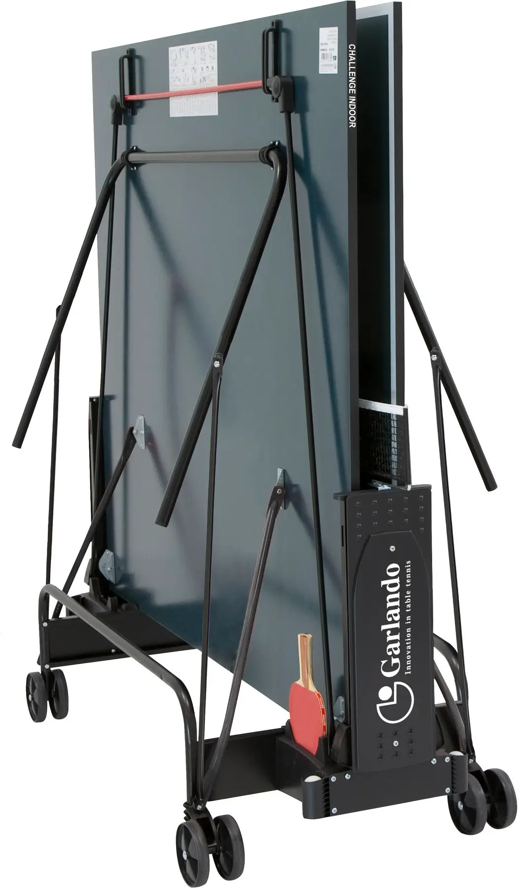 Тенісний стіл Garlando Challenge Indoor 16 mm Green (C-272I) призначений для гри в настільний теніс у закритих приміщеннях. Ігрова поверхня виконана з високоякісного ДСП товщиною 16 мм із меламіновим покриттям. Каркас та ніжки виготовлені з металевих трубок діаметром 25 мм із порошковим фарбуванням. Чотири здвоєні транспортувальні колеса діаметром 125 мм, два з яких обертаються на 360°, суттєво полегшують переміщення столу за потреби. Тенісний стіл оснащений сіткою та тримачем для ракеток і м'ячів. Компактний пристрій автоматичного закривання мінімізує обтяження після того, як настільний стіл складено, а система SMS (Smart Manual System) дозволяє розблокувати стільниці одним рухом максимально швидко та безпечно. Складана конструкція з автоматичною системою блокування забезпечує зручне зберігання столу в домашніх умовах. Піднявши одну з половинок стільниці, тенісний стіл можна використовувати як для одиночних тренувань, так і для гри людьми з обмеженими можливостями. Стільниця забезпечує хороший відскік м'яча, а покриття антивідблиску дозволяє грати довше, не напружуючи очей. Тенісний стіл Garlando Challenge Indoor 16 mm Green (C-272I) відповідає Європейським стандартам безпеки EN 14468-1/2.