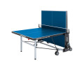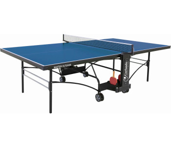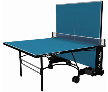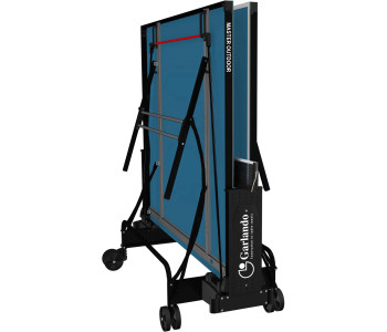 Garlando Master Outdoor 4 mm Blue (C-373E) - всепогодний тенісний стіл, призначений для гри в настільний теніс як на вулиці, так і в закритих приміщеннях. Ігрова поверхня виконана з меламінових плит товщиною 4 мм із металевою крайкою по периметру. Модель надзвичайно стійка, завдяки конструкції з квадратними ніжками з металевих трубок 25х25 мм і подвійним горизонтальним з’єднувальним планкам. Чотири здвоєні транспортувальні колеса діаметром 128 мм, два з яких обертаються на 360°, суттєво полегшують переміщення столу за потреби. Тенісний стіл оснащений сіткою та тримачем для ракеток і м'ячів. Компактний пристрій автоматичного закривання мінімізує обтяження після того, як настільний стіл складено, а система SMS (Smart Manual System) дозволяє розблокувати стільниці одним рухом максимально швидко та безпечно. Складана конструкція з автоматичною системою блокування забезпечує зручне зберігання столу в домашніх умовах. Піднявши одну з половинок стільниці, тенісний стіл можна використовувати як для одиночних тренувань, так і для гри людьми з обмеженими можливостями. Стільниця забезпечує хороший відскік м'яча, а покриття антивідблиску дозволяє грати довше, не напружуючи очей. Тенісний стіл Garlando Master Outdoor 4 mm Blue (C-373E) відповідає Європейським стандартам безпеки EN 14468-1/2.