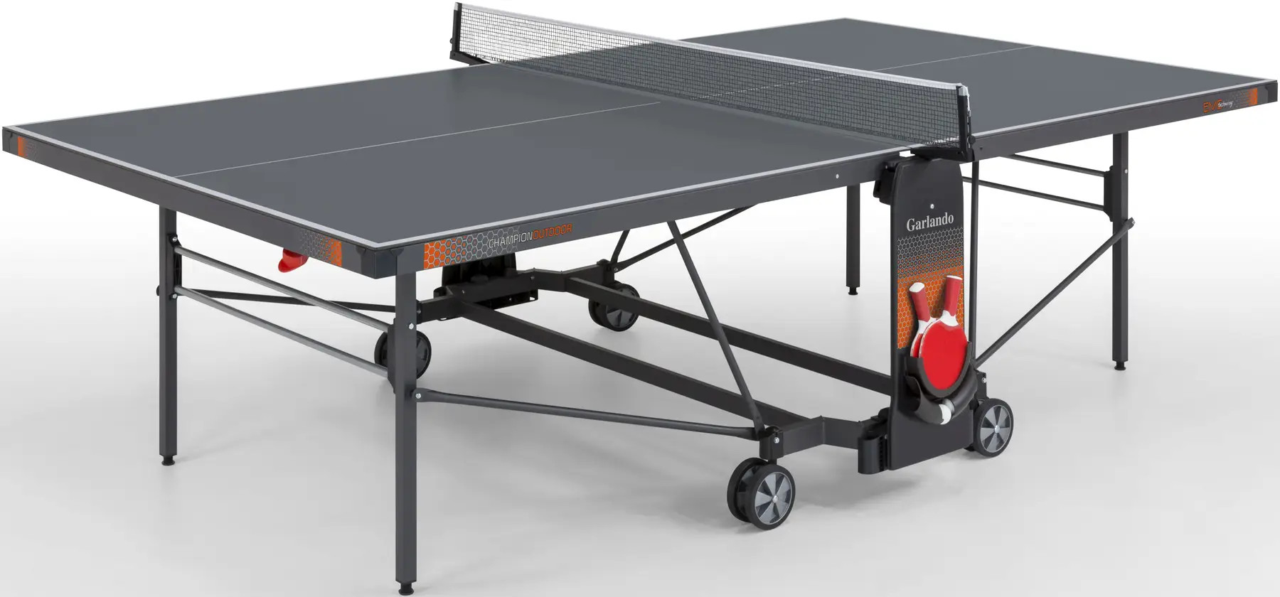 Garlando Champion Outdoor 3 mm Blue (C-470EG) - всепогодний тенісний стіл, призначений для гри в настільний теніс як на вулиці, так і в закритих приміщеннях. Ігрова поверхня виконана з меламінових плит товщиною 3 мм із металевою крайкою по периметру. Модель надзвичайно стійка, завдяки конструкції з квадратними ніжками з металевих трубок 30х30 мм і подвійним горизонтальним з’єднувальним планкам. Чотири здвоєні транспортувальні колеса діаметром 128 мм обертаються на 360°, що суттєво полегшує переміщення столу за потреби. Тенісний стіл оснащений сіткою та тримачем для ракеток і м'ячів. Компактний пристрій автоматичного закривання мінімізує обтяження після того, як настільний стіл складено, а система ECS дозволяє розблокувати стільниці одним рухом максимально швидко та безпечно. Складана конструкція з автоматичною системою блокування забезпечує зручне зберігання столу в домашніх умовах. Піднявши одну з половинок стільниці, тенісний стіл можна використовувати як для одиночних тренувань, так і для гри людьми з обмеженими можливостями. Стільниця забезпечує хороший відскік м'яча, а покриття антивідблиску дозволяє грати довше, не напружуючи очей. Тенісний стіл Garlando Champion Outdoor 3 mm Blue (C-470EG) відповідає Європейським стандартам безпеки EN 14468-1/2, рекомендований для інтенсивного використання в школах і клубах.