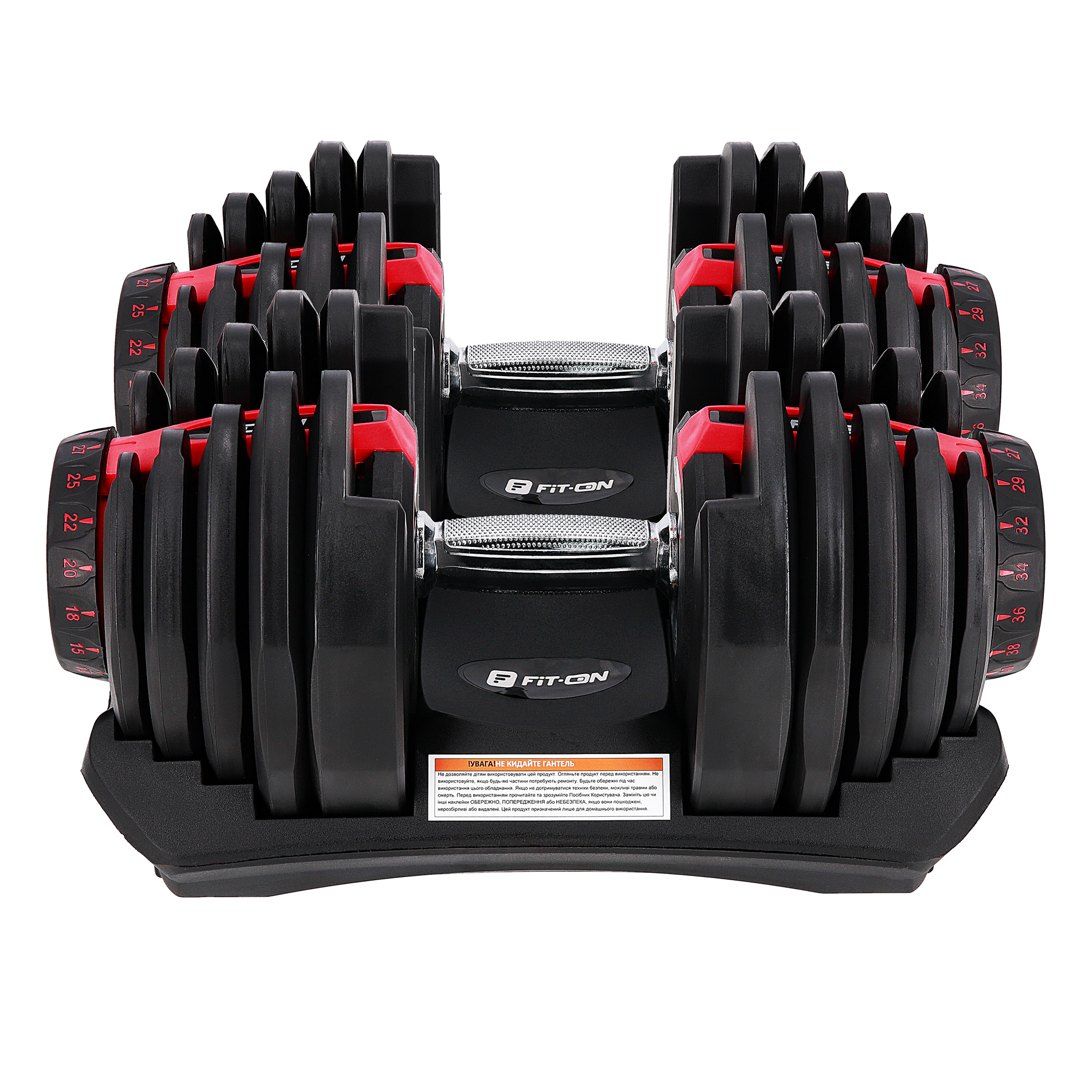 Створені за зразком популярних гантелей Bowflex SelectTech, наші гантелі Fit-On Flex пропонують максимальну гнучкість вагових налаштувань від 5 до 40 кг. Легко налаштуйте вагу, щоб відповідати вашим потребам на кожному етапі вашого тренувального процесу. Тепер у вас є можливість легко регулювати вагу прямо під час тренування, без необхідності у багатьох окремих гантелях. Завдяки унікальній конструкції, ви отримуєте безліч можливостей від одного набору гантелей.