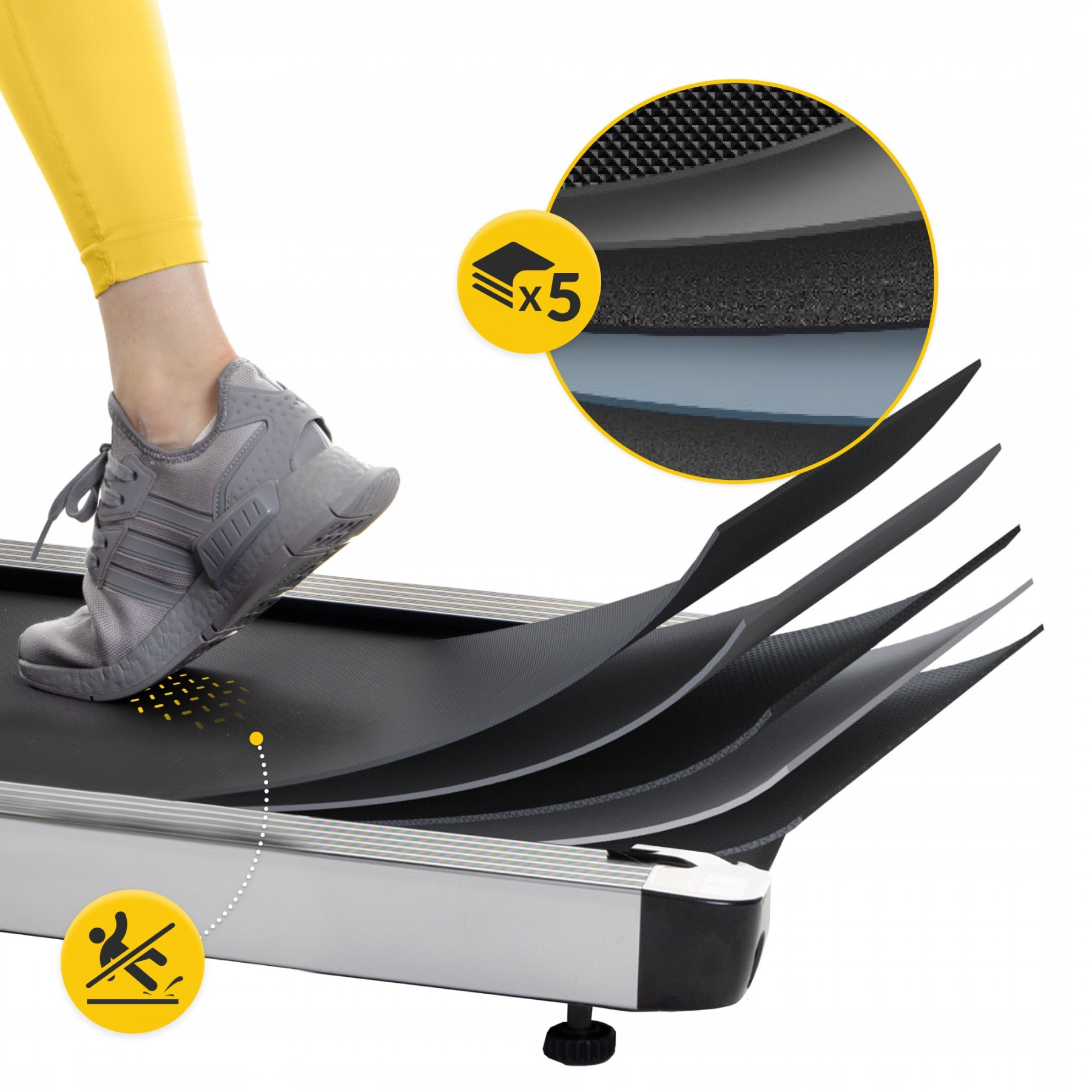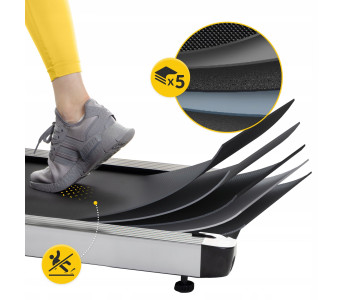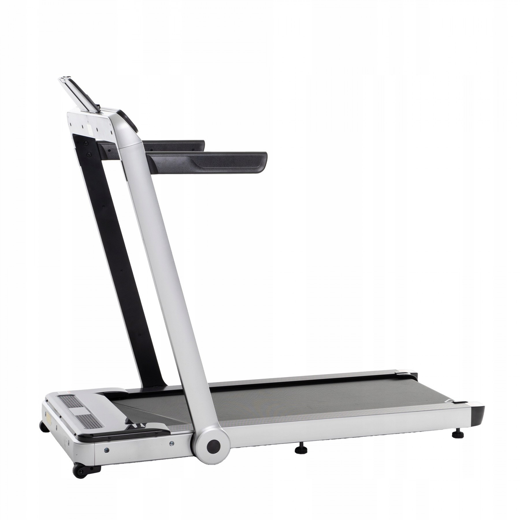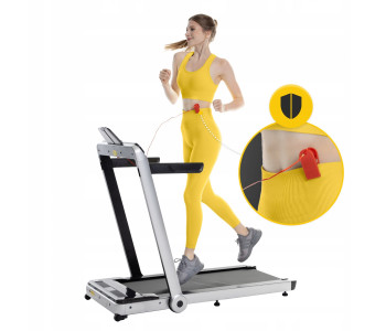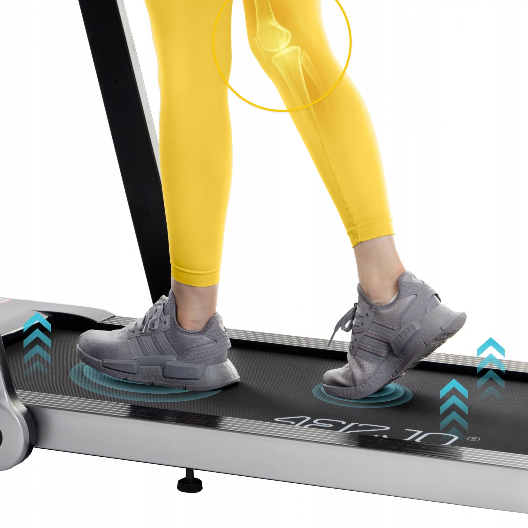 Бігова доріжка від 4FIZJO обладнана надійним двигуном потужністю 1.5 к.с. з піковим значенням до 2 к.с. Він забезпечує стабільну швидкість руху від 1 до 12 км/год під максимальною вагою користувача до 100 кг. 5-шарове бігове полотно має некозвку структуру та підвищену стійкість до зношення, його розміри складають 44.5 x 105 см. Амортизувати удари при бігу допомагають стабілізаційні ніжки з функцією вирівнювання підлоги. Доріжку можна використовувати у двох положеннях: класичному - з розкладеними поручнями, а також в компактному вигляді - з опущеними поручнями, для зручності керуванням в комплекті передбачений пульт ДУ.