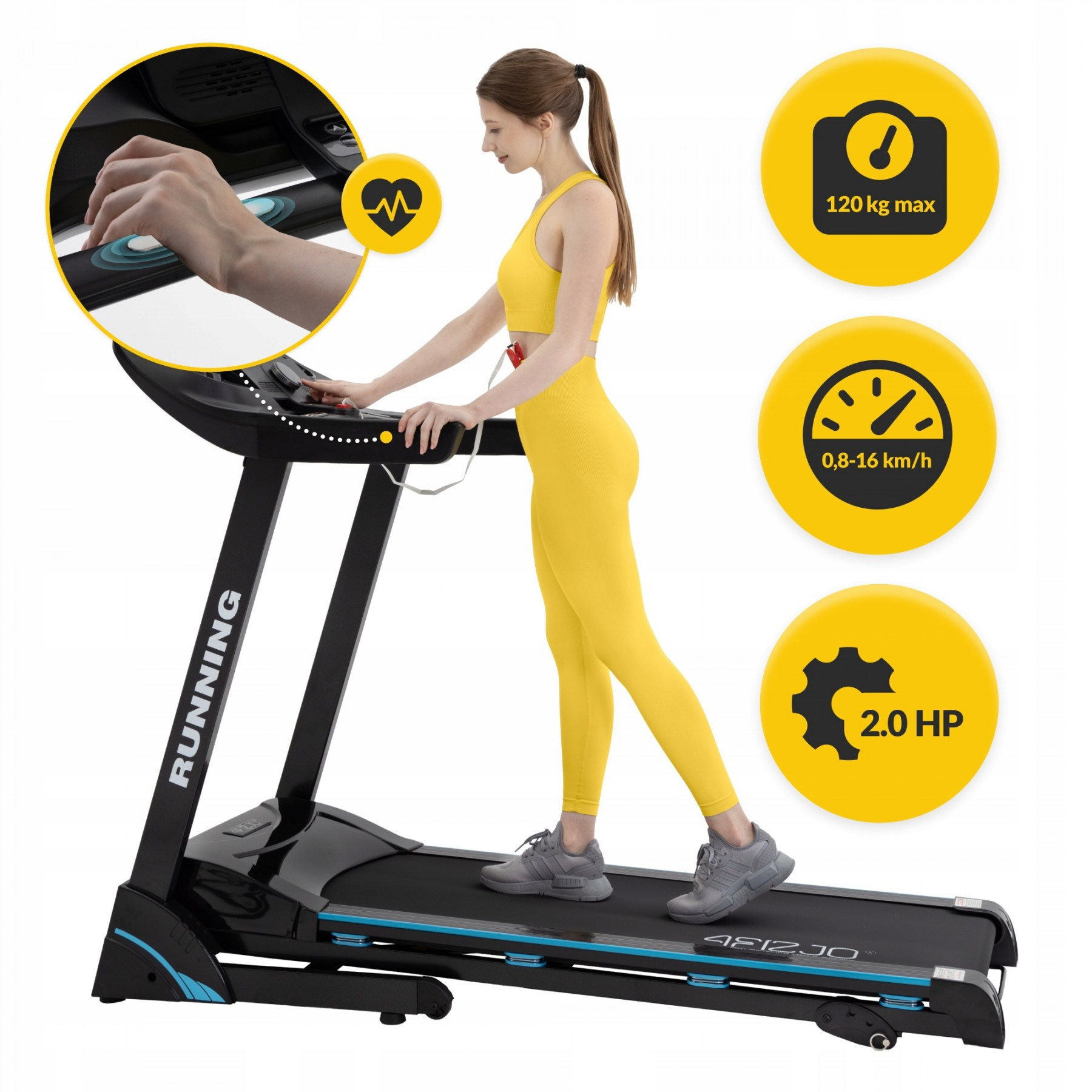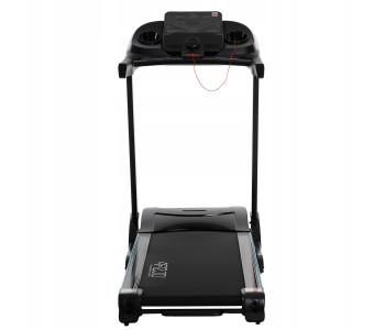 Бігова доріжка від 4FIZJO обладнана надійним двигуном потужністю 2 к.с. з піковим значенням до 3 к.с. Він забезпечує стабільну швидкість руху від 0.8 до 16 км/год під максимальною вагою користувача до 120 кг. Трикомпонентне бігове полотно має некозвку структуру та підвищену стійкість до зношення, його розміри складають 45 x 126 см. Сучасна 8-точкова пружинна система амортизації підвищує безпеку під час бігу та запобігає перевантаженню суглобів і хребта. Кут нахилу полотна бігової доріжки можна вручну регулювати в 3 положеннях від 0 до 15%, це допомагає суттєво урізноманітнити та ускладнити тренування.