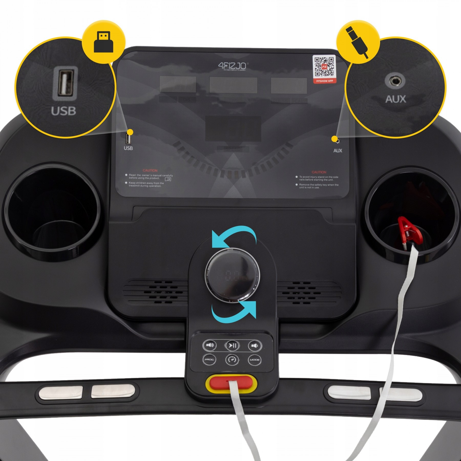 Вбудовані 24 програми не дадуть занудьгувати навіть вимогливим користувачам. Ефективність тренувань зазвичай вимірюється кількістю пройдених кілометрів, витраченими калоріями чи тривалістю активності. Ви знайдете всю цю інформацію на панелі керування бігової доріжки. Все, що вам потрібно зробити, це ввести свої параметри (стать, вік, зріст, вага) перед початком занять. Далі ви тренуєтеся, а консоль виконує всі розрахунки за вас. Ось так виглядає ефективна автоматизація у спорті. В розпорядженні користувача й інші приємні функції: вбудовані динаміки, bluetooth, клавіші швидкого доступу, місце для пляшки з водою, підставка для телефона/планшета, вхід для навушників, USB вхід, сумісність з мобільними додатками та інше.
