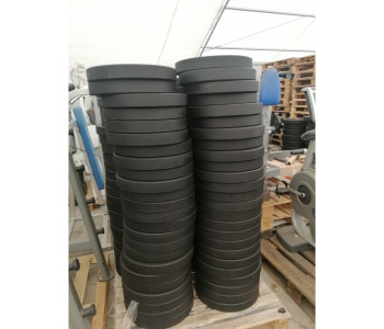 Поверхня бампованих дисків RCP23 гладка і приємна на дотик. Покриття - гумова суміш, що використовується для виробництва дисків для штанги, досить щільна, щоб мінімізувати їх товщину і тверда, щоб уникати деформації при тривалій експлуатації, захистити обладнання.