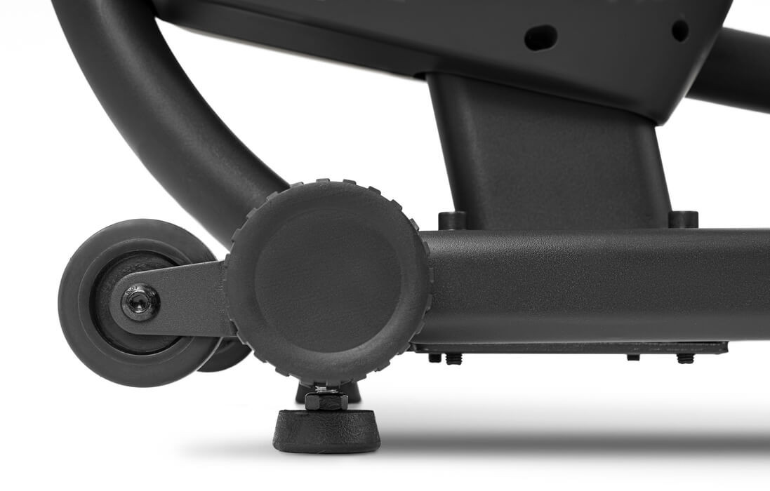 Тренажер Galaxy оснащений транспортувальними роликами, вбудованими в передній стабілізатор, завдяки яким ви легко і просто можете перемістити обладнання в будь-яке зручне для вас місце.