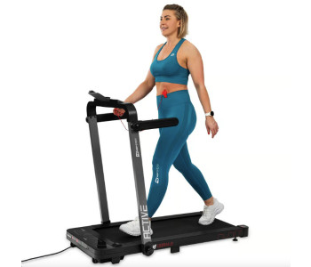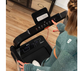 Завдяки складаним поручням ви можете перетворити класичну доріжку на доріжку для ходьби із максимальною швидкістю до 6 км/год - чудово для прогулянок під час роботи за комп'ютером. Ключ безпеки дає змогу миттєво зупинити тренажер у разі потреби.