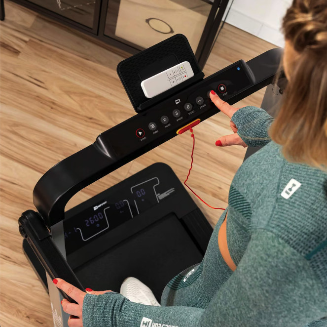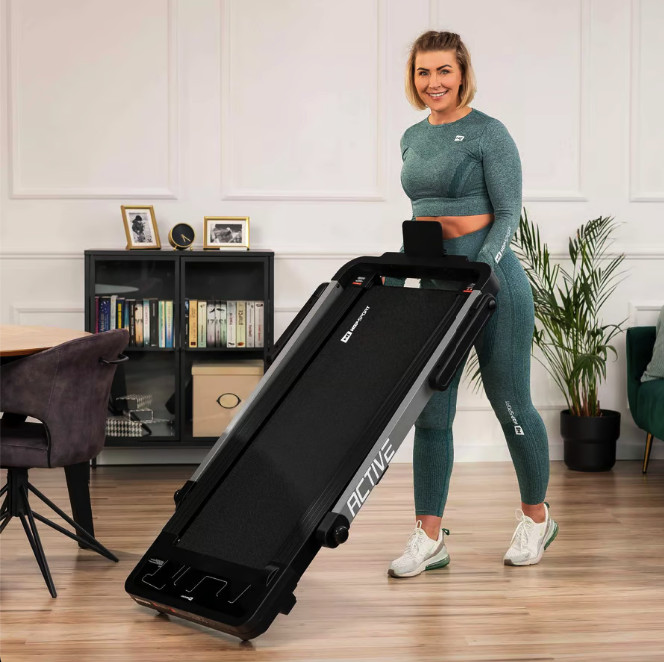 Для власників невеликих помешкань HS-1300WLB Active стане ідеальним вибором. Ця складна бігова доріжка легко складається у максимально компактний формат, завдяки чому не займає багато місця й може зберігатися: