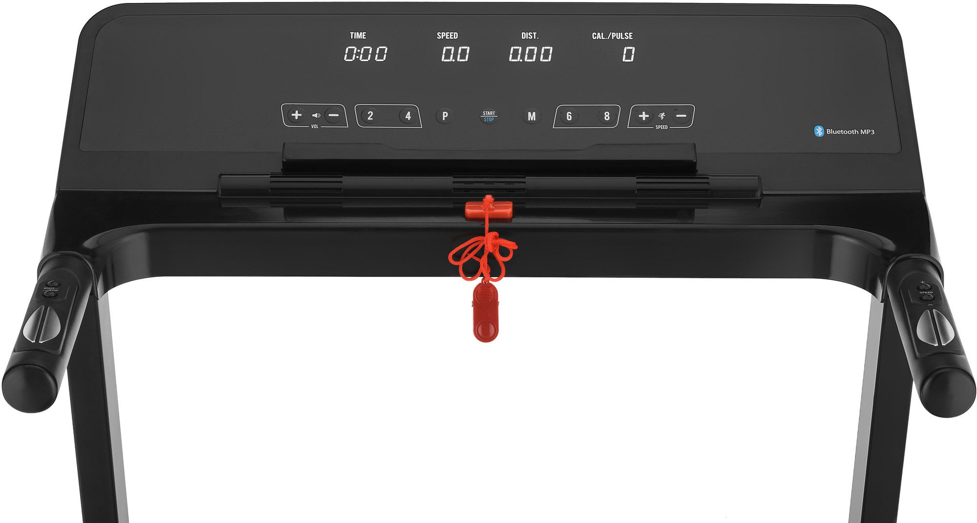 Захисний ключ забезпечує миттєве вимкнення бігової доріжки, а міцна конструкція та 24-місячна гарантія дають впевненість під час тренувань вдома.