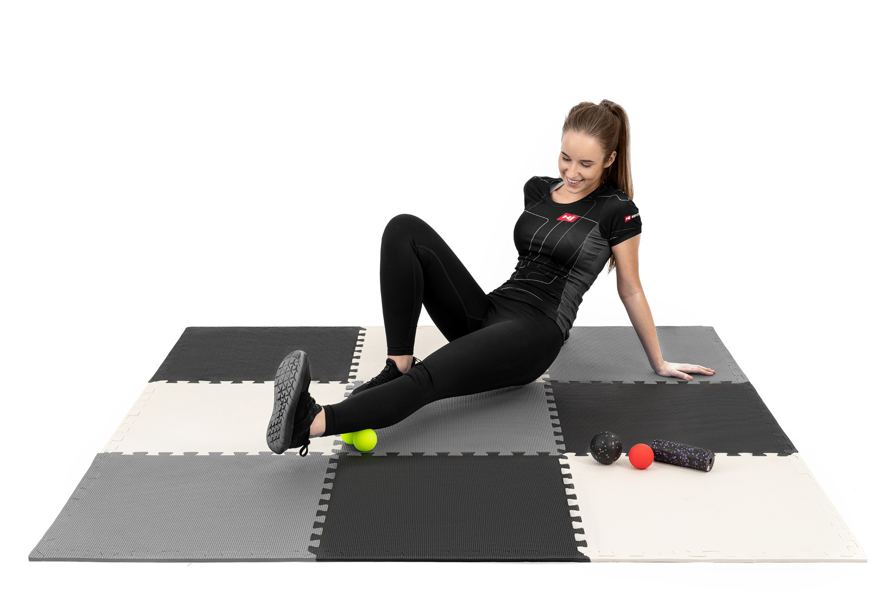 Килимок-пазл EVA HS-A010PM чорний/білий/сірий - універсальний продукт, що гарантує захист підлоги під час домашніх тренувань! Спортивний килимок виготовлений з піни EVA - нековзного матеріалу з амортизуючими та ізолюючими властивостями, що робить його чудовою основою для всіх видів спортивного обладнання: велотренажерів, орбітреків, гребних тренажерів, бігових доріжок або тренувальних лавок. Крім того, килимок-пазл можна використовувати для силових вправ - тренування зі штангою або гирями будуть безпечнішими та комфортнішими. Модель HS-A010PM складається з 9-ти частин із рамкою. Розміри розкладеного мату - 180х180см. Основні характеристики: