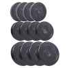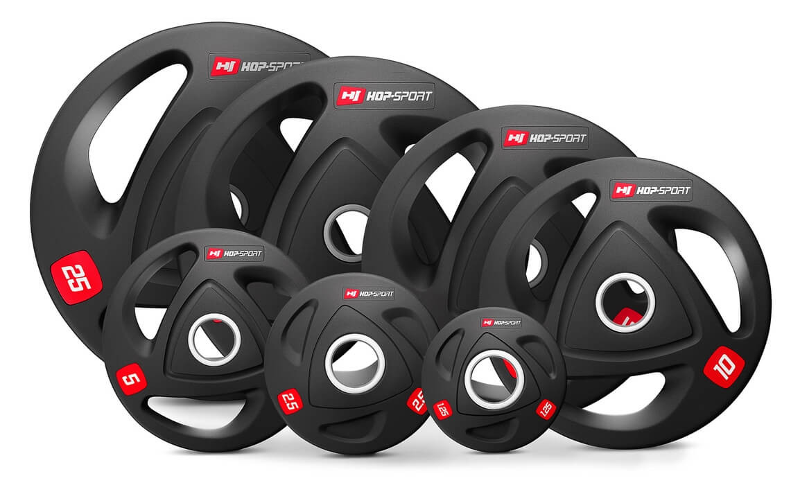 Олімпійські диски 10 кг виготовлені з прецизійного чавуну, покриті антиковзким шаром міцної гуми, яка ефективно амортизує диски при їх падінні і додатково заглушає звуки при падінні. Кільце з нержавіючої сталі в центрі диска з діаметром 51 мм гарантує їм високу міцність і забезпечує точну посадку на штангу. Вага витиснена на дисках, що спрощує їх ідентифікацію, а також спеціальні пази унікальної форми, що виконують роль ручок та підвищують комфорт використання.