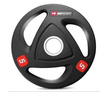 Олімпійські диски 5 кг виготовлені з прецизійного чавуну, покриті антиковзким шаром міцної гуми, яка ефективно амортизує диски при їх падінні і додатково заглушає звуки при падінні. Кільце з нержавіючої сталі в центрі диска з діаметром 51 мм гарантує їм високу міцність і забезпечує точну посадку на штангу. Вага витиснена на дисках, що спрощує їх ідентифікацію, а також спеціальні пази унікальної форми, що виконують роль ручок та підвищують комфорт використання.
