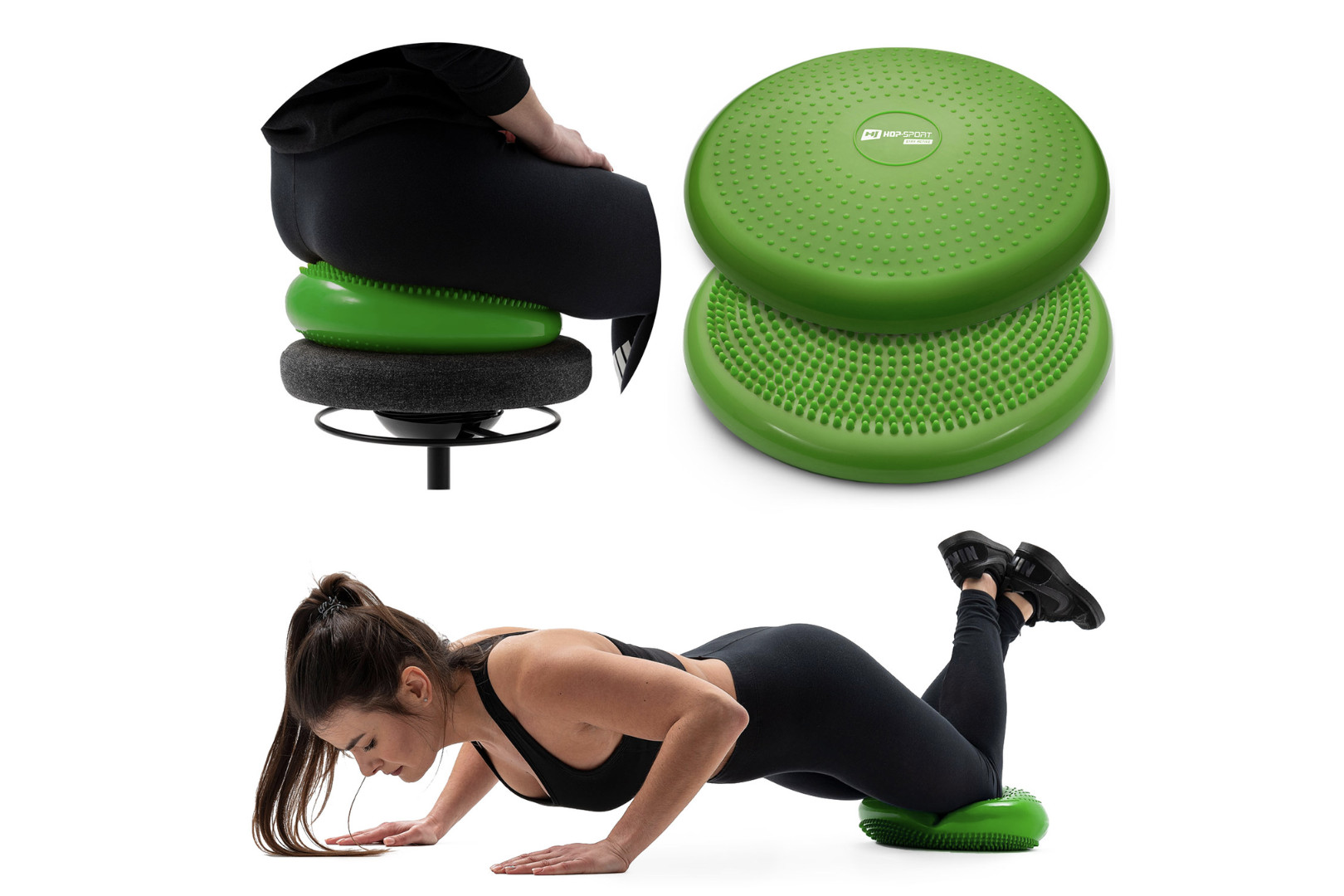 Балансувальна подушка Hop-Sport - необхідний аксесуар для тих, хто хоче працювати над правильною поставою. Для цього достатньо регулярно використовувати її як подушку для сидіння. Подушка також може використовуватися для сенсомоторних вправ - вони показані як допоміжний засіб при будь-якому фізичному навантаженні. Регулярне використання сенсорної подушки покращує відчуття стійкості і рівноваги, а також координацію рухів. Подушка виготовлена з безпечного та приємного на дотик матеріалу. Основні характеристики: