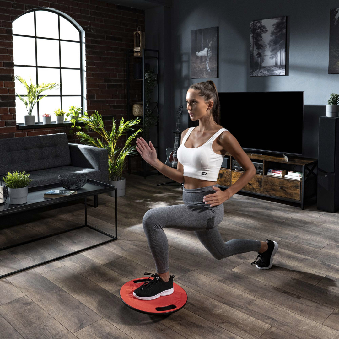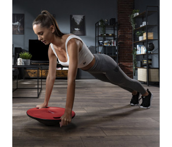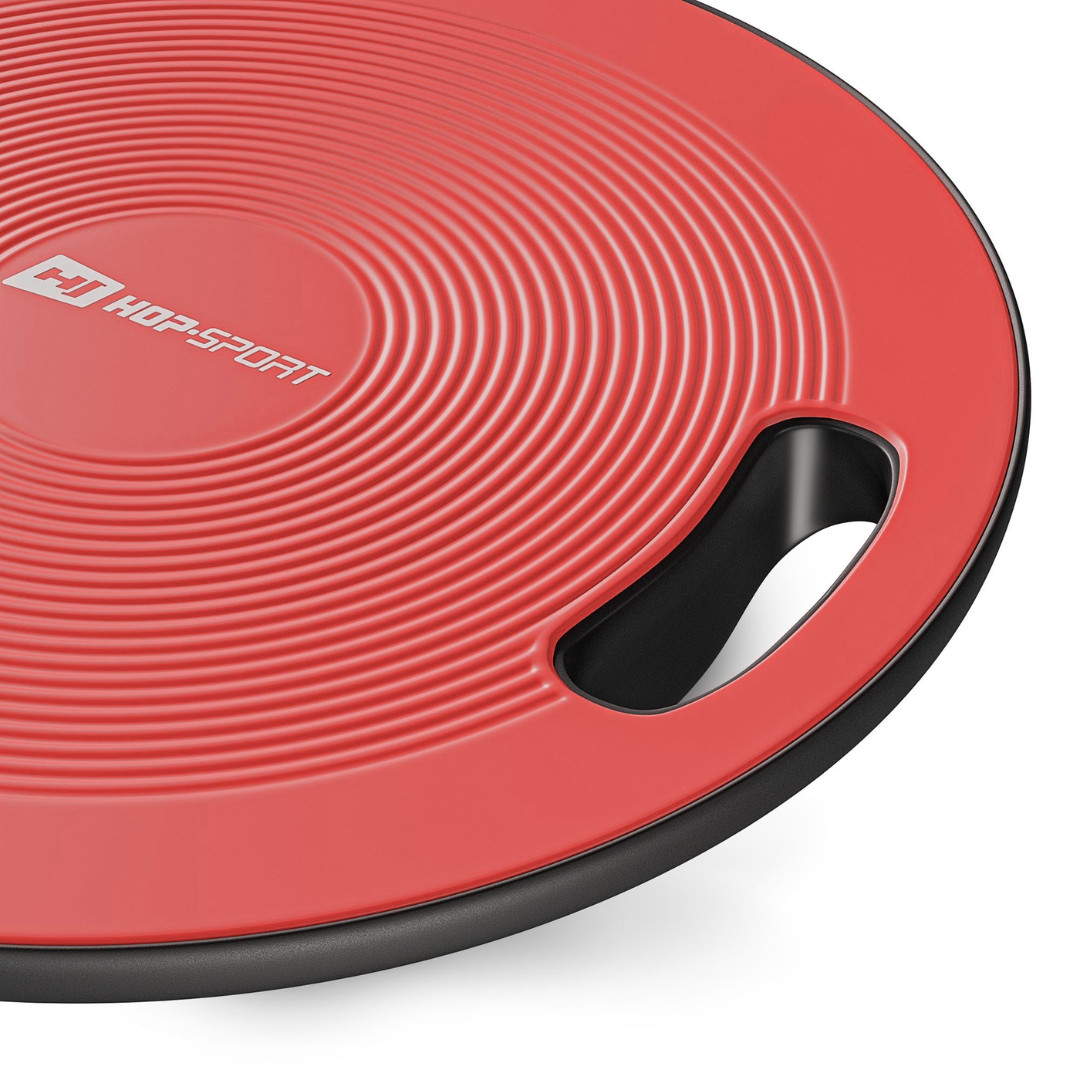 Платформа для балансування Hop-Sport червоного кольору діаметром 40см розроблена таким чином, що дозволяє виконувати різні вправи, як у вертикальному положенні, стоячи на диску, так і горизонтально, спираючись на руки. Виготовлений з високоякісного синтетичного матеріалу - без запаху, водовідштовхувального і стійкого до розтріскування - він прослужить тривалий час. Поверхня диска покрита смугами, які перешкоджають зізковзування рук/ніг під час тренування. Це підвищує рівень безпеки користувача.