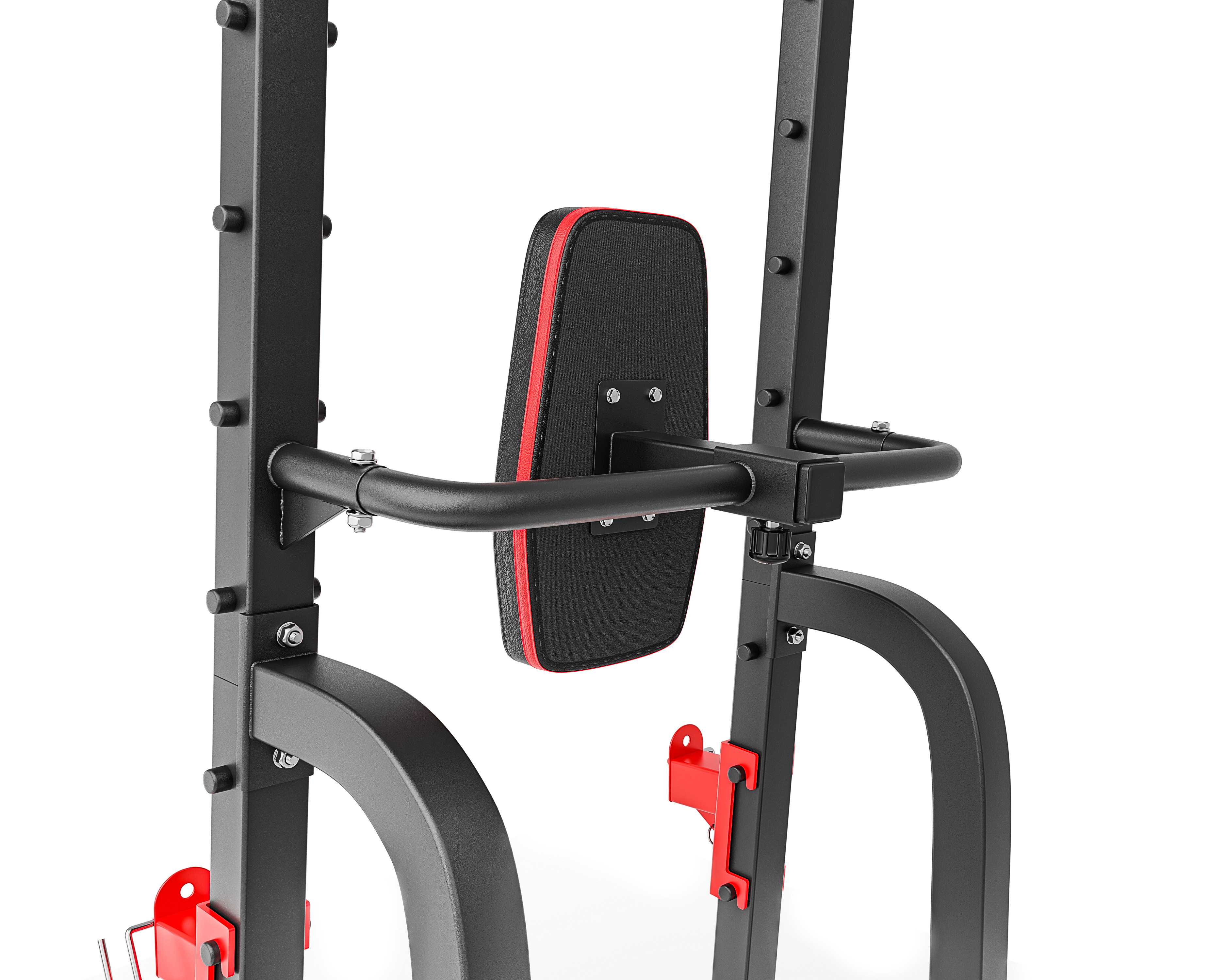 Станція обладнана регульованими (11 позицій) тримачами для штанги. З їх допомогою ви можете виконувати комплексні силові тренування вдома: жим лежачи, станову тягу або присідання. Залежно від вправ, штанга може активувати до 70% м'язів нашого тіла. Тренування зі штангою - відмінний спосіб не тільки сформувати м'язи, але і скинути зайву вагу і поліпшити загальну фізичну форму.