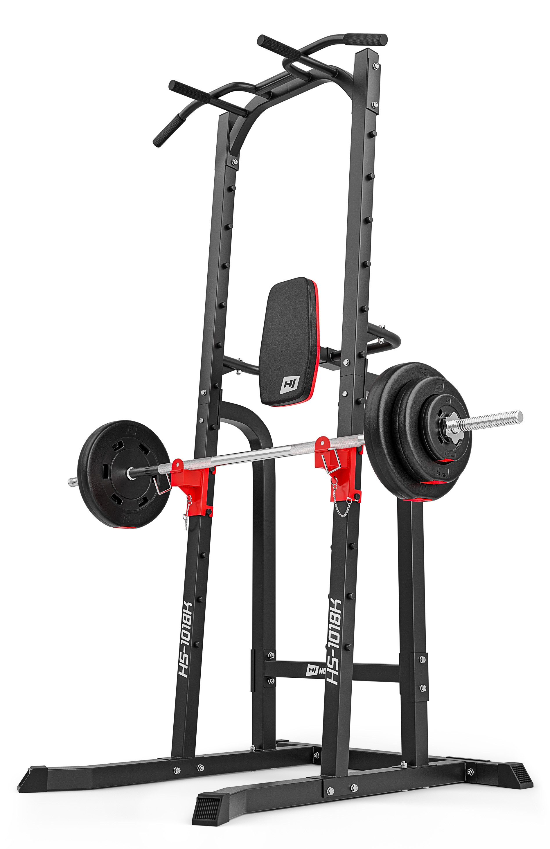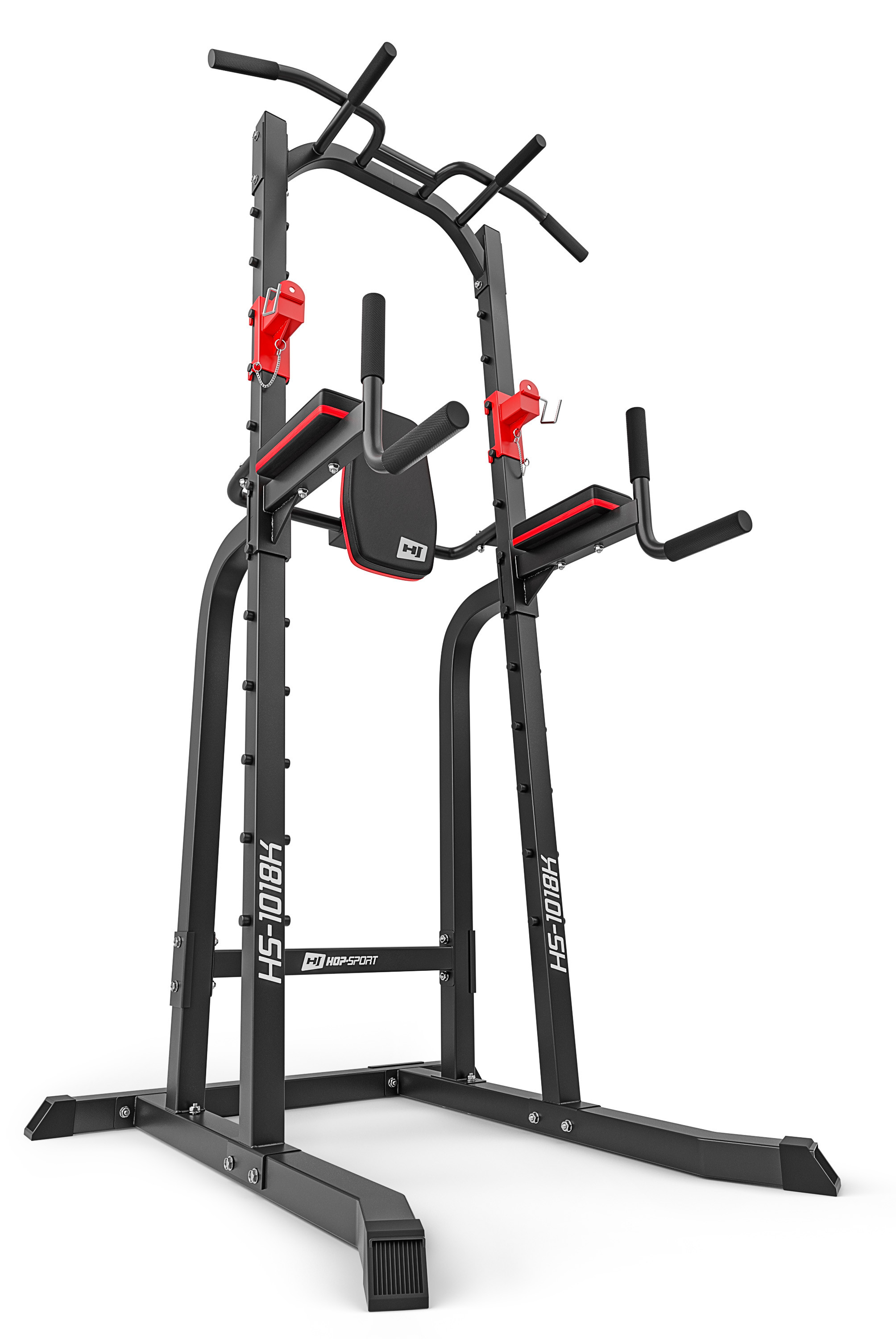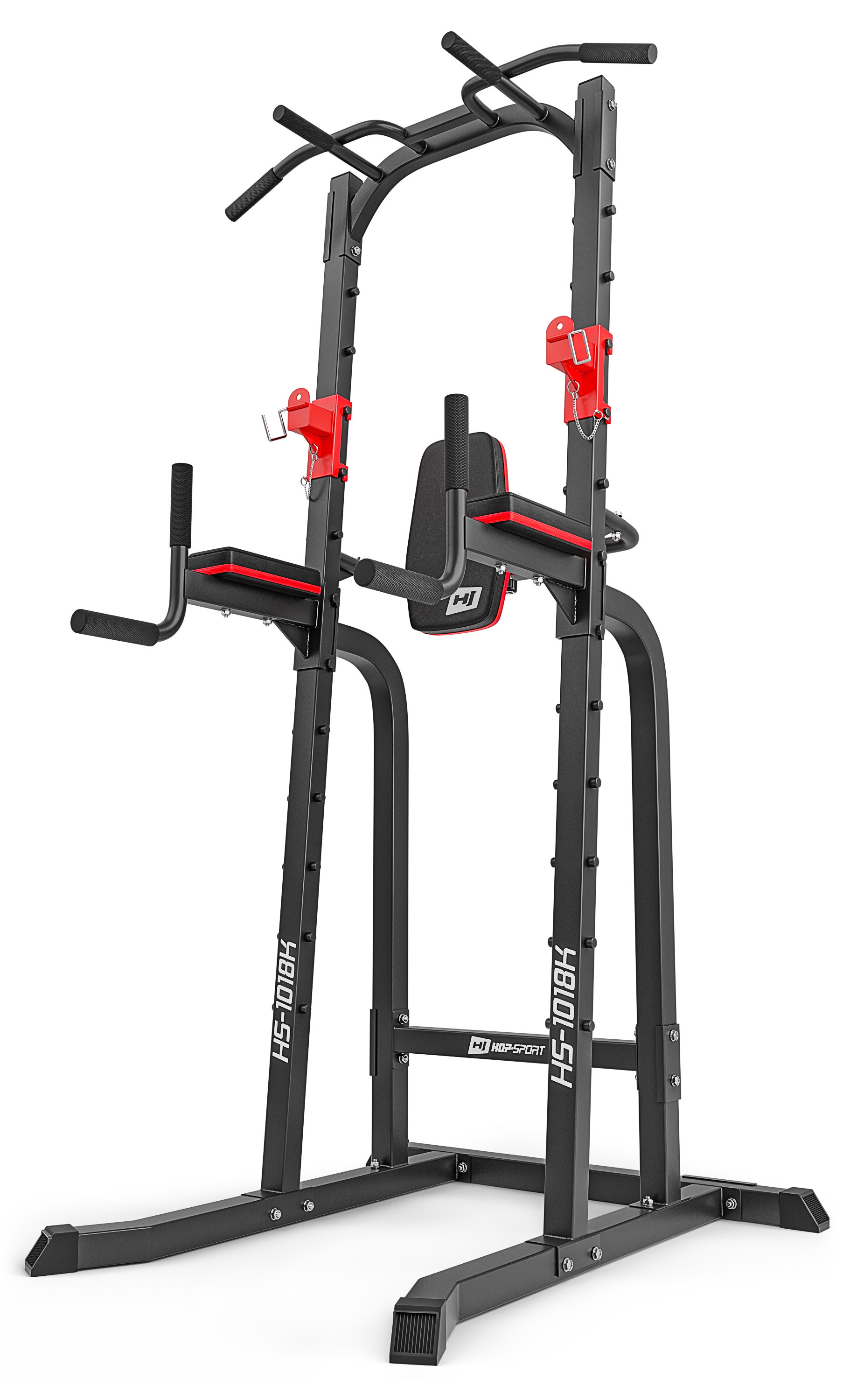 Силова станція HS-1018K - це багатофункціональна тренувальна станція від Hop-Sport, яка складається з турніка, поручнів для віджимань і висів, а також тримача для штанги. Окремі елементи пристрою регулюються таким чином, щоб якнайкраще адаптуватися до вимог користувача. Силові тренування можливі як без використання додаткових обважнювачів (достатньо власної ваги), так і зі штангою. Силова станція дозволяє виконувати найрізноманітніші вправи, забезпечуючи комплексне тренування в домашніх умовах. Підлокітники і спинка гарантують комфорт під час тренування. Міцна і надійна конструкція з використанням сталевих профілів зручна і надійна навіть під час інтенсивних вправ.