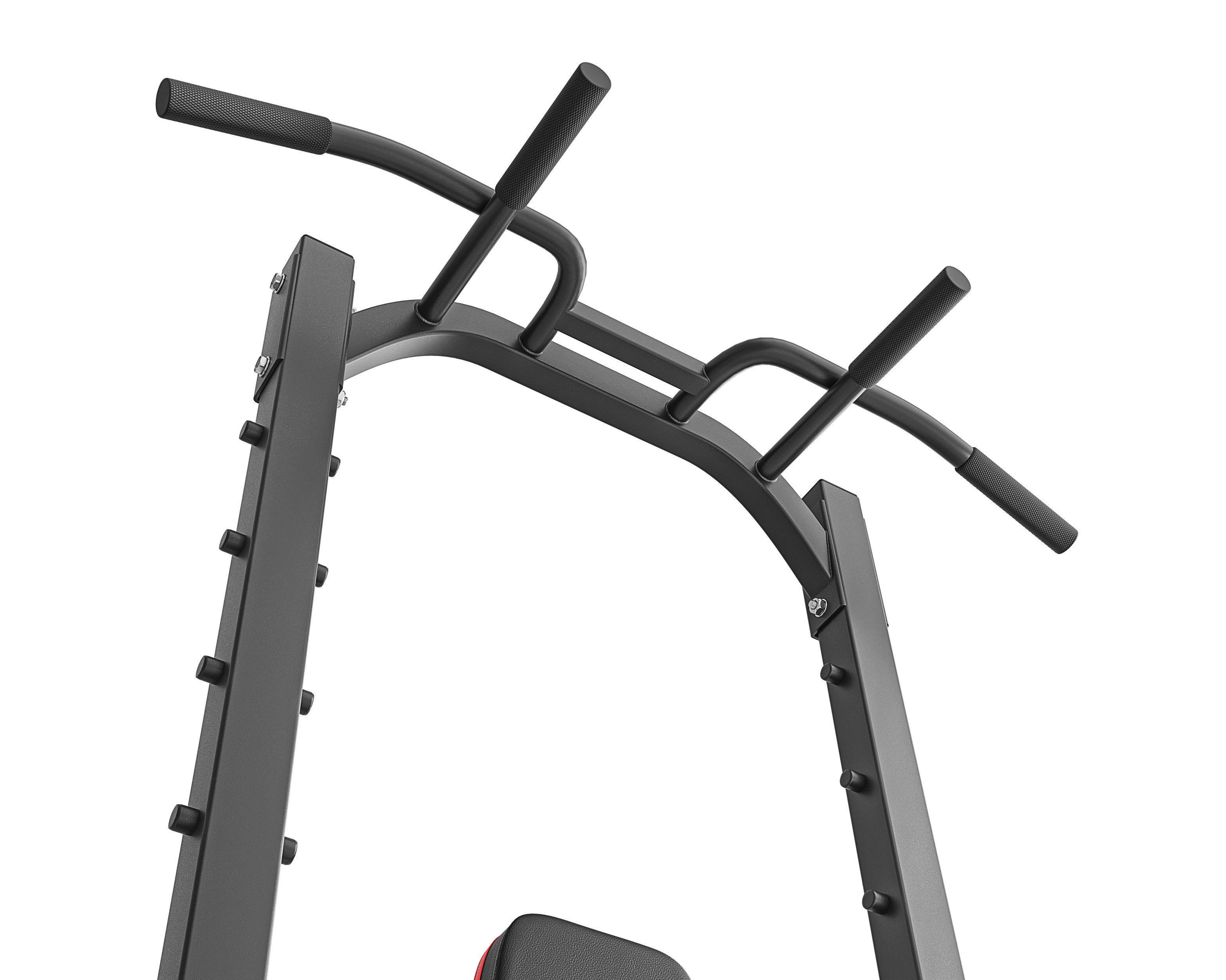 Поручні в центральній частині станції використовуються для виконання віджимань і висів. Вправи на поручнях ефективні для розвитку м'язів живота: прямих, косих внутрішніх і зовнішніх, а також поперечних. Крім того, вони забезпечують ефективне тренування рук, трицепсів і грудей. М'яка спинка та підлокітники, а також нековзкі ручки, гарантують безпеку і комфорт під час тренування.