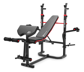 Конструкція тренувальної лави з партою Скотта дозволяє виконувати найрізноманітніші вправи. Підтримка правильної постави під час вправ робить тренування ефективними і безпечними. Лавку легко підігнати під свої параметри за допомогою простих регулювань. У комплект входять 18 висококласних чавунних диска загальною вагою 125кг, прямий гриф довжиною 167см, вигнутий гриф довжиною 120см і два гантельних грифа з хромованої сталі.