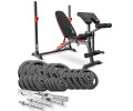 Комплект для бодібілдингу Hop-Sport складається з лавки HS-1095, дисків вагою 90 кг, прямого і вигнутого грифів. Всі ці елементи необхідні для виконання силових тренувань вдома. Завдяки силовим тренуванням ви схуднете, поліпшите фігуру, розвинете витривалість, а також поліпшите загальну фізичну форму. Конструкція тренувальної лави з партою Скотта дозволяє виконувати найрізноманітніші вправи. Підтримка правильної постави під час вправ робить тренування ефективними і безпечними. Лавку легко підігнати під свої параметри за допомогою простих регулювань. У комплект входять 12 висококласних чавунних диска загальною вагою 90 кг, прямий гриф довжиною 218см і вигнутий гриф довжиною 120см з хромованої сталі. Гарантія є важливим підтвердженням необхідної якості. Ми впевнені в товарі, який продаємо, тому надаємо гарантію 2 роки на лавку та 5 років на штанги та гантелі.
