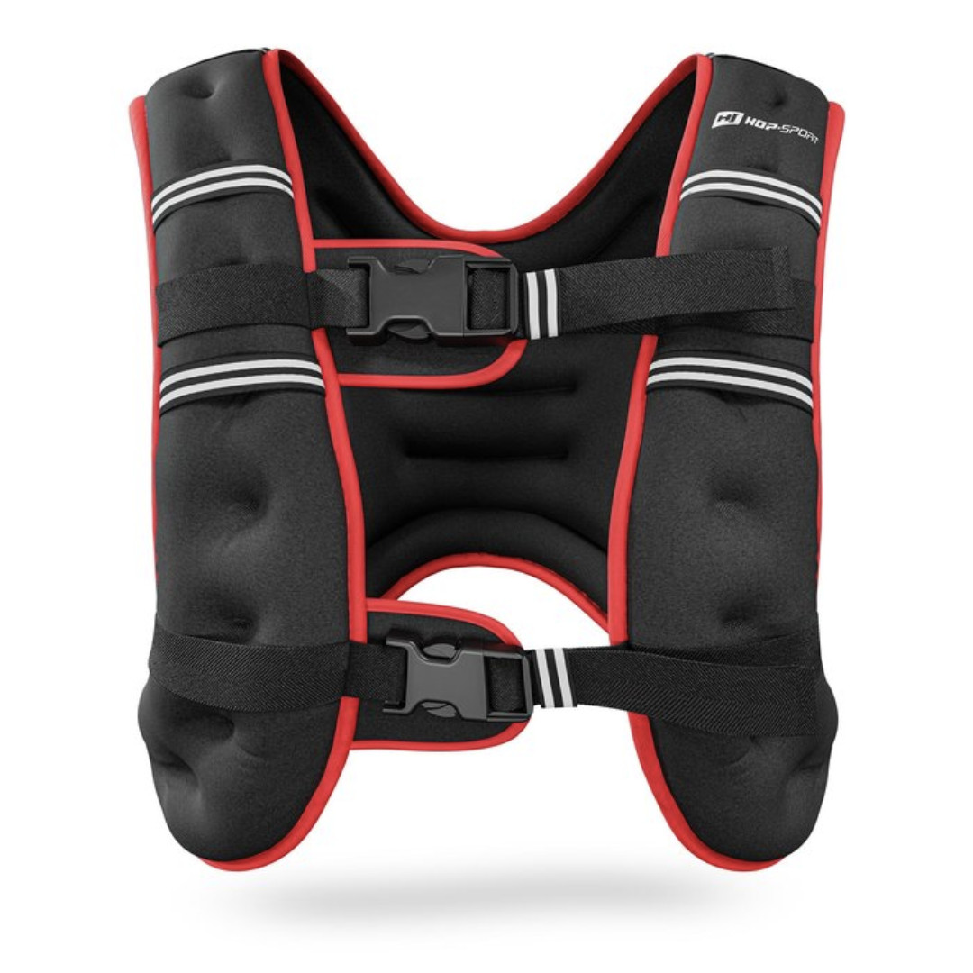 Жилет-обтяжувач вагою Жилет-обтяжувач 10 кг Hop - Sport дозволить підвищити інтенсивність тренувань та зміцнити м'язи під час фізичної активності, такі як фітнес-тренування, кросфіт, біг та аеробіка. Це також буде корисно в силових тренуваннях, забезпечуючи кращу стабілізацію тіла, серед іншого при тренуванні з штангою чи гантелями. Жилетка з обтяженням Hop- Sport виготовлена з міцного, але м'якого неопрену, наповненого піском по всій поверхні, що забезпечує рівномірний розподіл ваги. Практичні деталі такі як задня кишеня, світловідбивачі та подвійна застібка забезпечують комфорт та безпеку під час виконання різноманітних видів діяльності. Жилет зручний, збоку щільно прилягає, його можна носити під одягом навіть взимку. Жилет загальною вагою 10 кг допомагає збільшити навантаження і швидше досягти бажаних результатів без надмірного навантаження на суглоби.