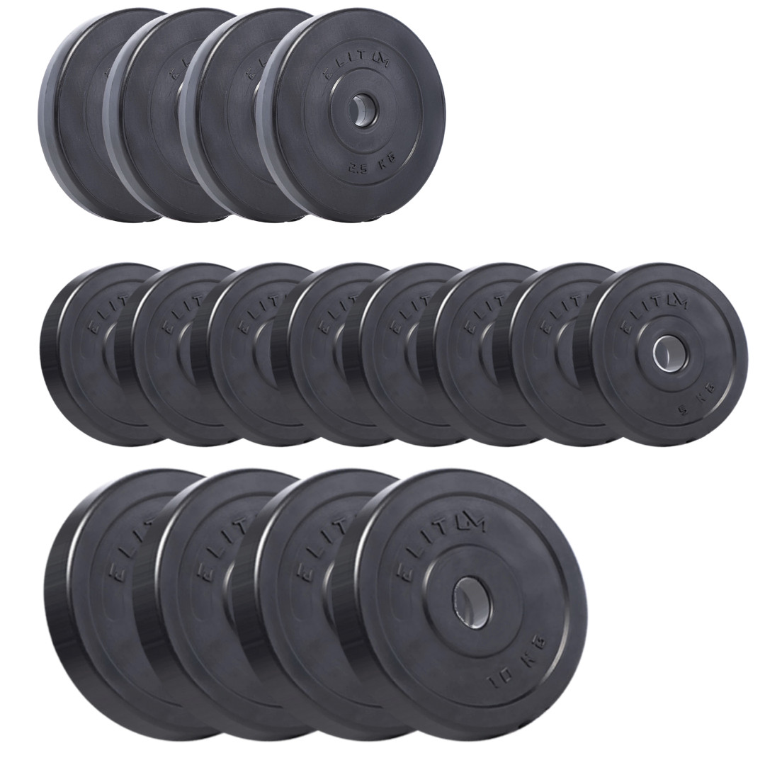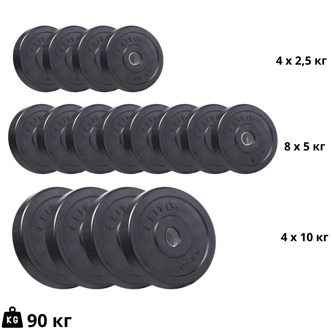 Набір Elitum 90 кг - це універсальний спортивний снаряд для повноцінних силових тренувань в домашніх умовах. Склад набору підібраний з урахуванням рекомендацій професійного тренера, як оптимальне поєднання необхідної ваги та кількості дисків. Набір дозволяє найкращим чином тренувати всі необхідні групи м'язів, і дати їм максимально ефективне навантаження. З набором Elitum ви зможете поліпшити фізичну форму і стан здоров'я, наростити м'язову масу, підвищити витривалість і зміцнити серцево-судинну систему. Набір складається з дисків, покритих ABS-пластиком. Висока якість виготовлення і довговічність деталей гарантує, що ваші тренування з даним набором будуть проходити комфортно, безпечно і з максимальною користю.
