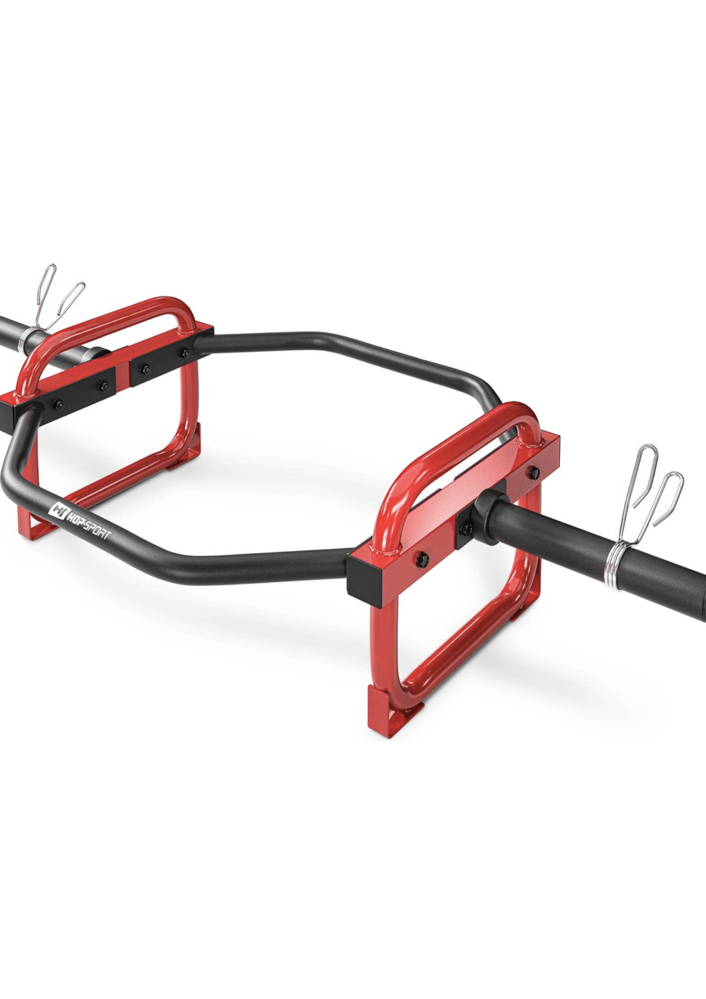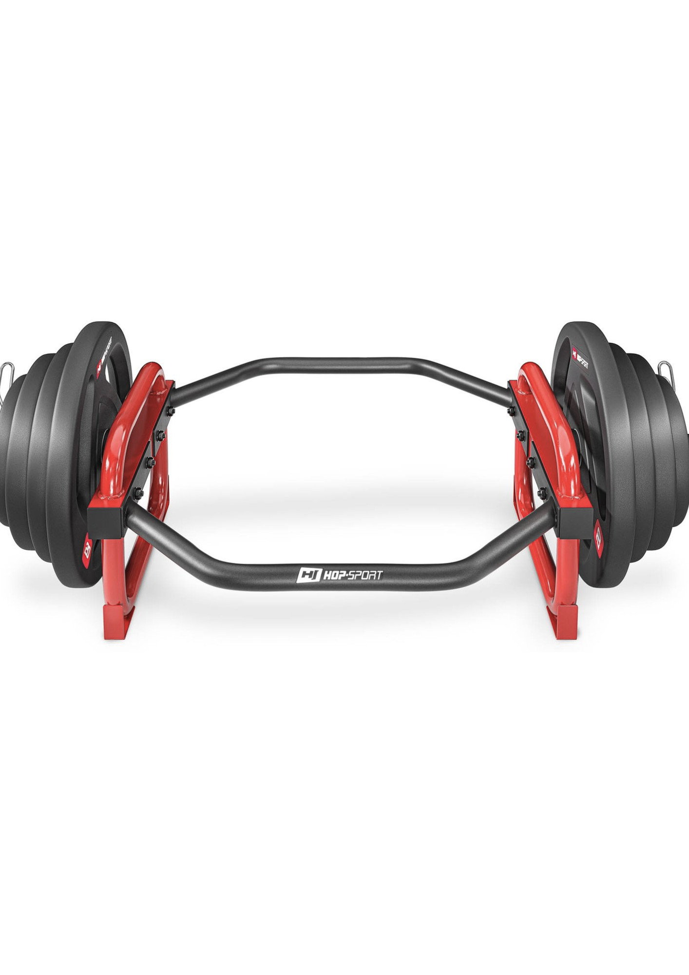 Треп-гриф олімпійський від Hop-Sport (гриф для мертвої або станової тяги) це спеціалізований гриф ромбовидної форми, який завдяки особливості конструкції дозволяє найефективніше виконувати вправу станова тяга. Також треп-гриф рекомендований для силових тренувань, таких як "ходьба фермера", знизування плечима, веслування або різні види віджимань. Завдяки особливостям конструкції грифа, вага штанги практично збігається з центром ваги атлета і спрощує біомеханіку руху, завдяки чому знижується ризик розтягнення спини, суглоби і м'язи захищені від травм. Шестигранний гриф виготовлений із міцної сталі, що забезпечує вантажопідйомність до 250 кг. Діаметр грифа адаптований для тренувань з олімпійськими дисками 51 мм. За додаткову безпеку під час виконання вправ відповідають замки пружинного типу (затискачі), які ефективно фіксують диски, і стопори, які блокують навантаження на правильній відстані від конструкції штанги.